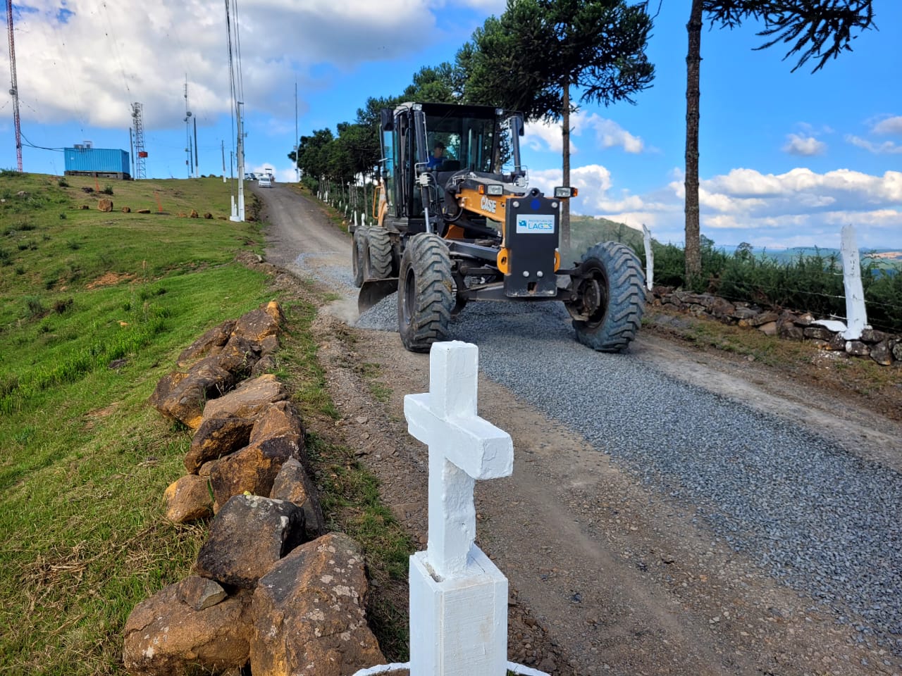 À Secretaria de Obras coube realizar a revitalização da estrada de acesso lateral ao Morro da Cruz - rua João Odilo Madruga - com cascalhamento, patrolamento e nivelamento, e outros tipos de reparos nas proximidades do único acesso terrestre ao Morro da Cruz.