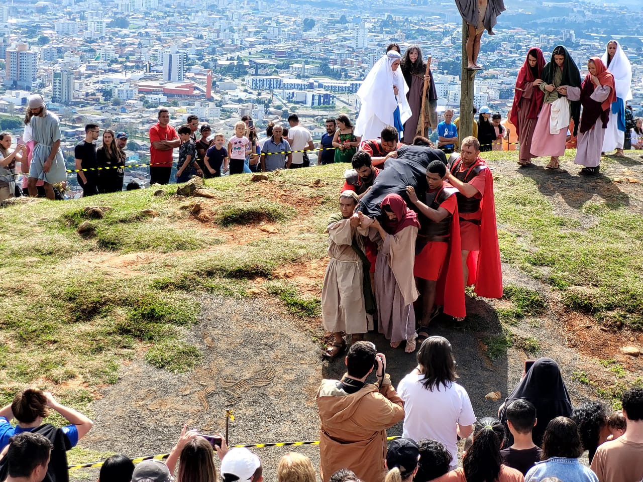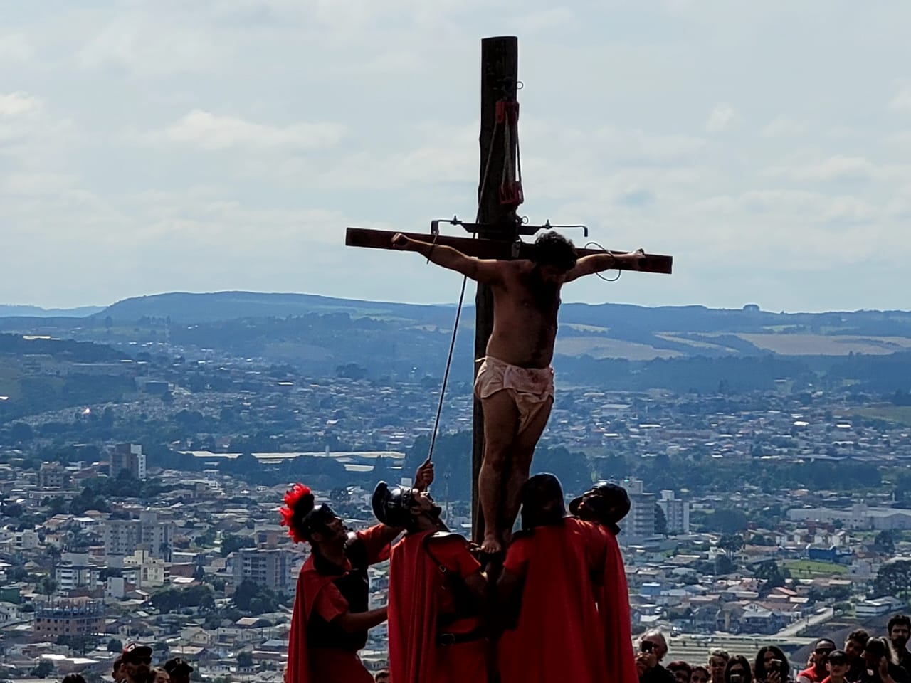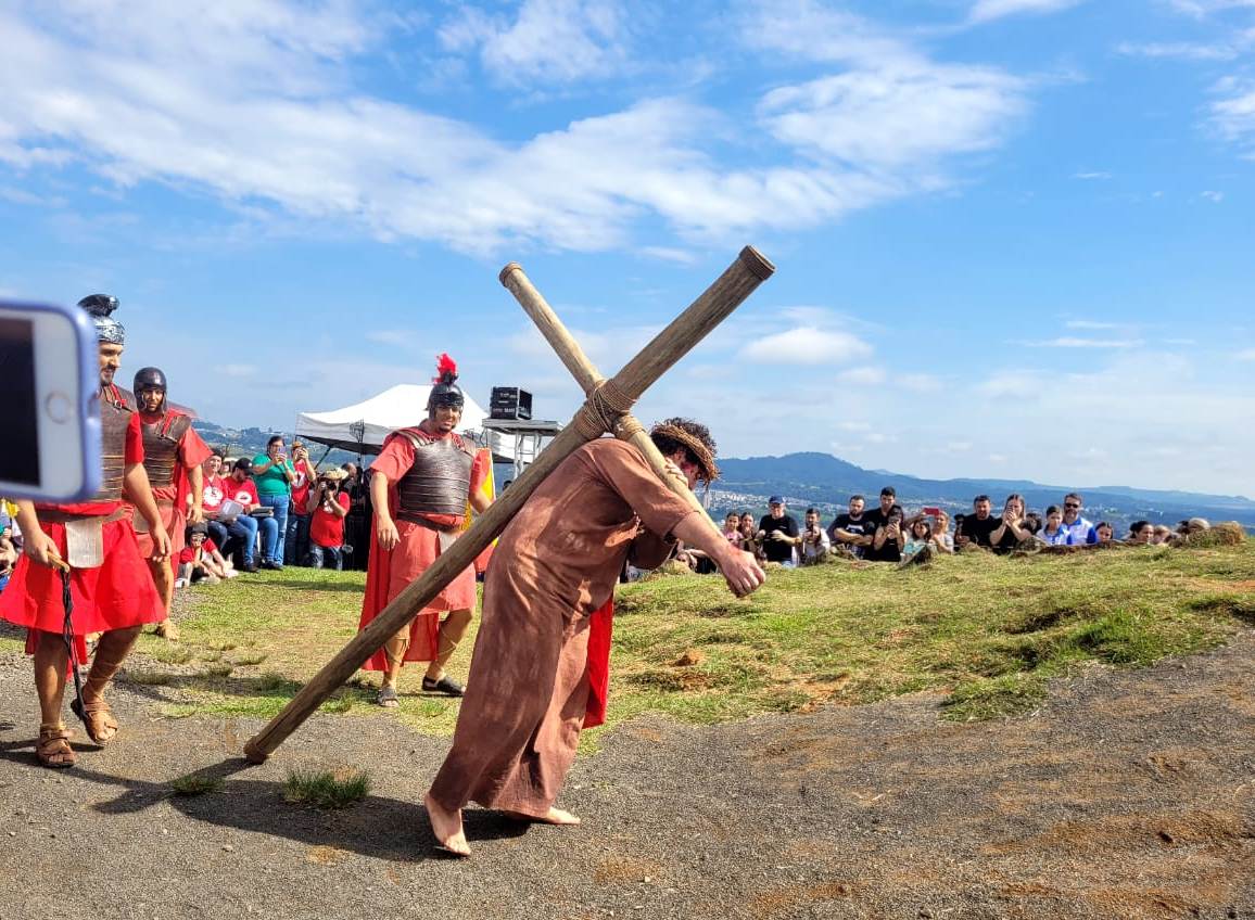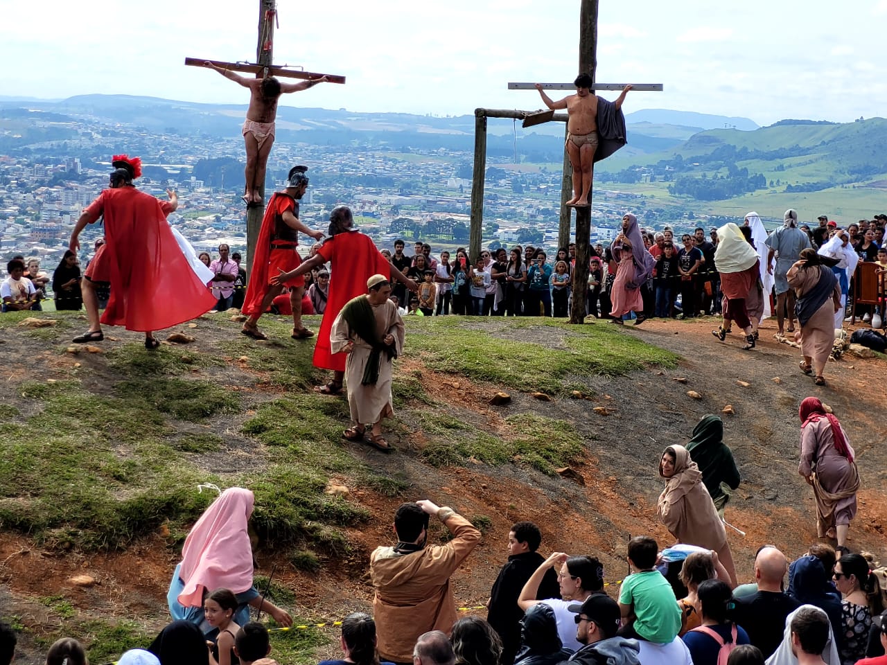 A Sexta-feira Santa (29), amanheceu nublada, porém pouco antes do espetáculo religioso da Encenação da Paixão, o sol resplandeceu forte, atraindo ainda mais o grande público presente no alto do Morro, e com a presença do vice-prefeito Juliano Polese Branco, que teve bastante fôlego para subir os 500 degraus da Escadaria Frei Silvério.