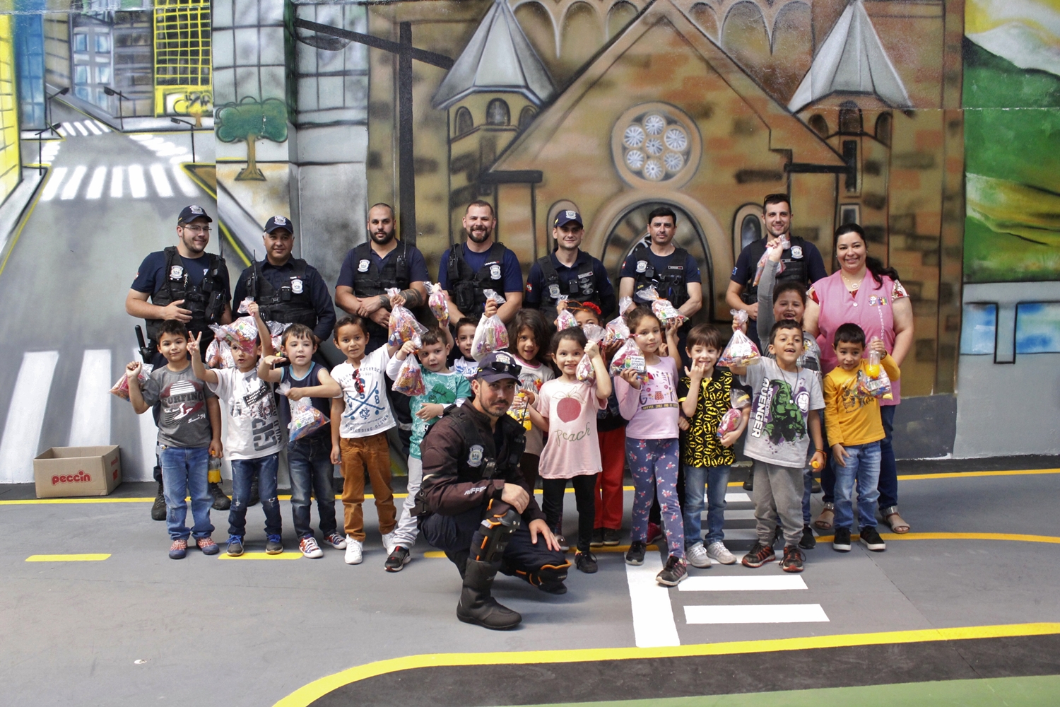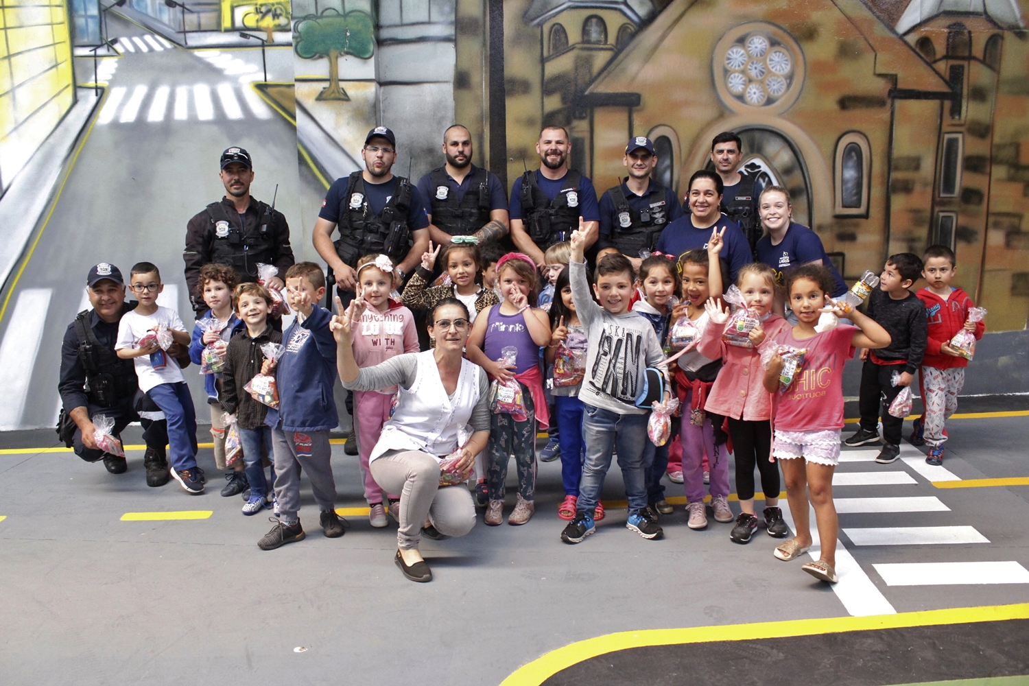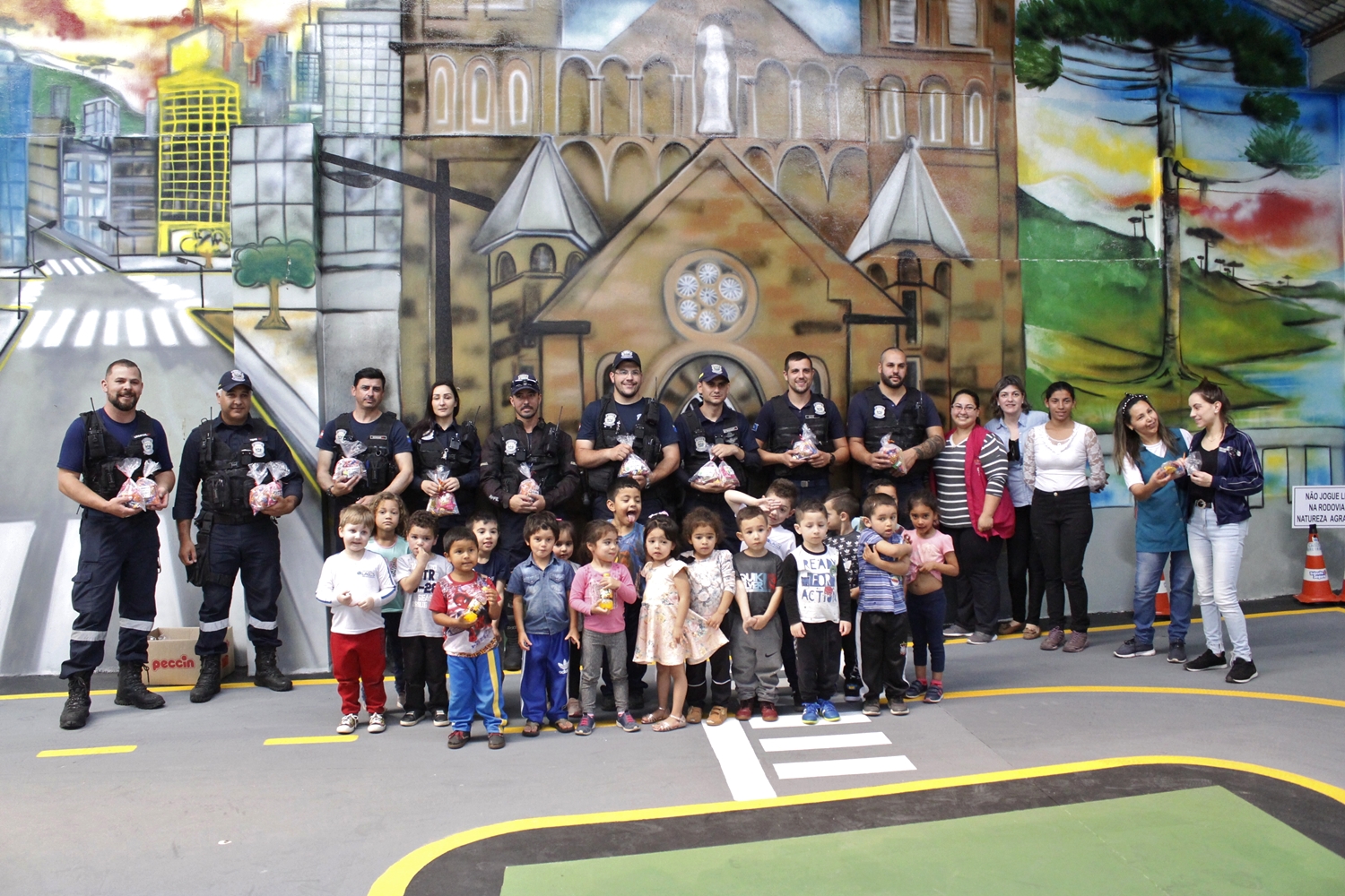 A dois dias de comemorar o Dia das Crianças, a Prefeitura de Lages, através da Diretran recebeu na Pista Educativa de Trânsito cerca de 140 alunos do CEIM Ivo Pacheco de Andrade. A visita, que normalmente serve para repassar informações sobre educação no trânsito a todos os pequenos lageanos, desta vez teve um gostinho especial. A Pista Educativa de Trânsito foi inaugurada recentemente pelo prefeito Antonio Ceron e já é considerada uma referência para outros municípios.