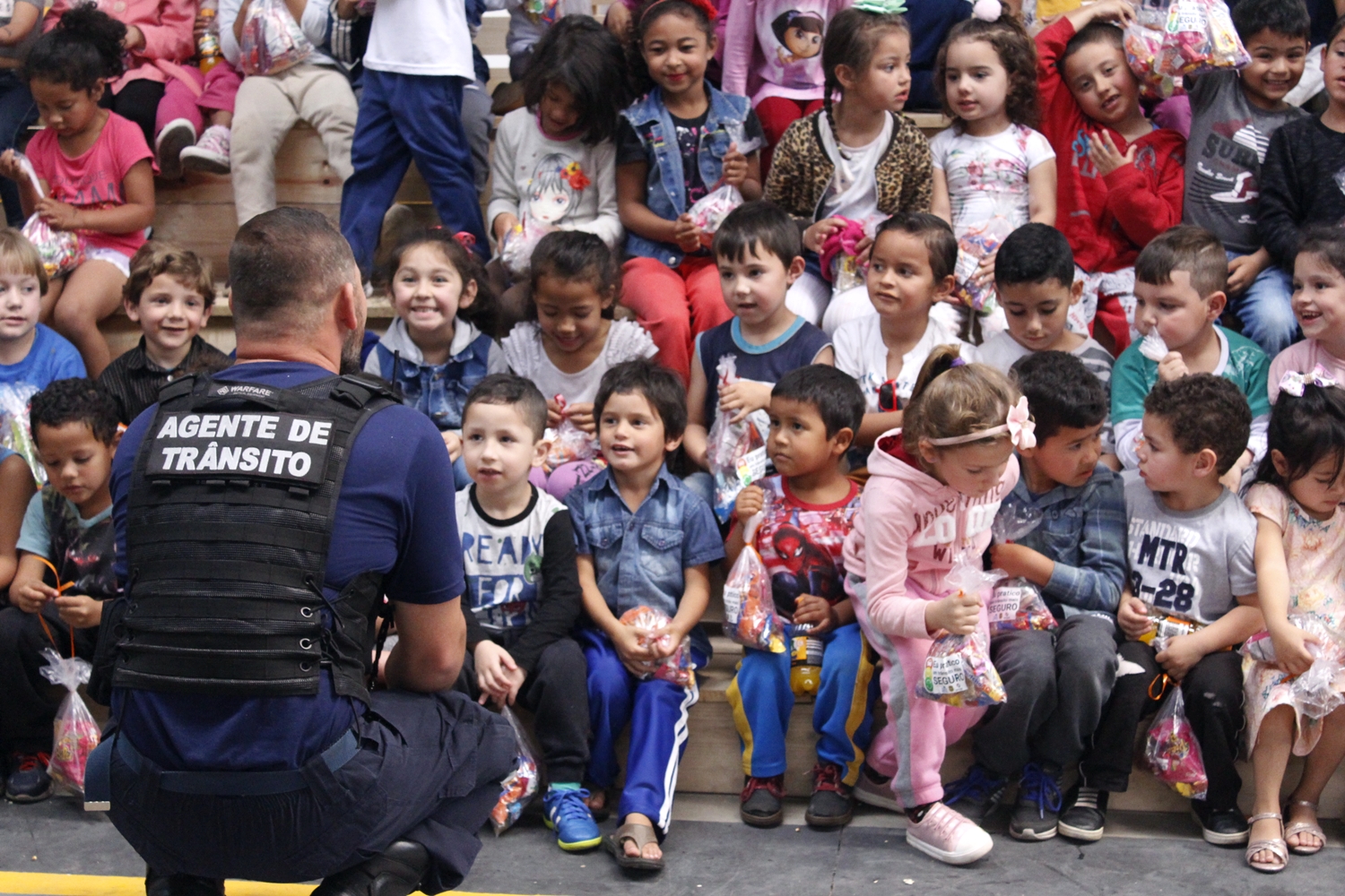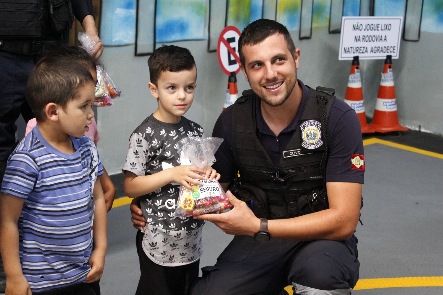 O Agente de Trânsito, Luis Ricardo Lehmkuhl, é quem acompanha e coordena as visitas à Pista Educativa. Para ele, o carinho das crianças é a parte mais gratificante. “Eu gosto muito do que faço. E ganhar o carinho deles em troca é o pagamento. E numa ação como essa, o carinho parece ser em dobro”, conta.