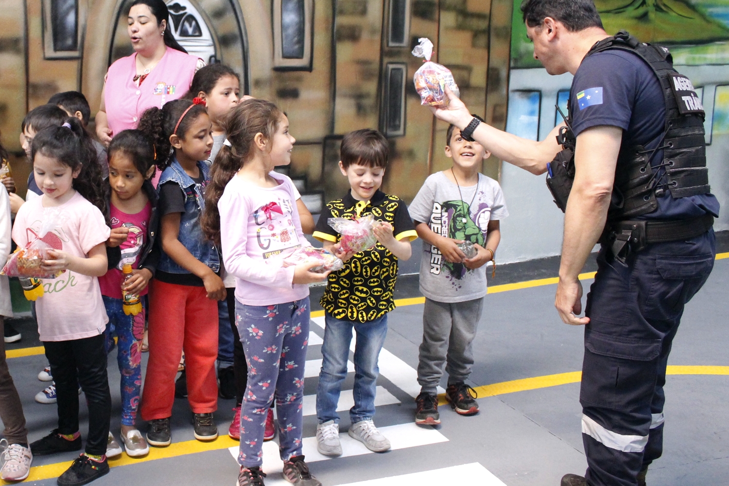 Além de aprender as regras de convivência no trânsito, as crianças foram recebidas com um delicioso lanche, brincadeiras e kit repleto de doces. A gerente de Educação de Trânsito, Aracelly Kristhiany de Oliveira, explica que a ação foi toda idealizada pela Diretran. “Nós já queríamos fazer alguma ação alusiva ao Dia da Criança, e como a visita do CEIM coincidiu com a data, nós nos reunimos, arrecadamos o dinheiro e estamos proporcionando um dia especial para eles”.