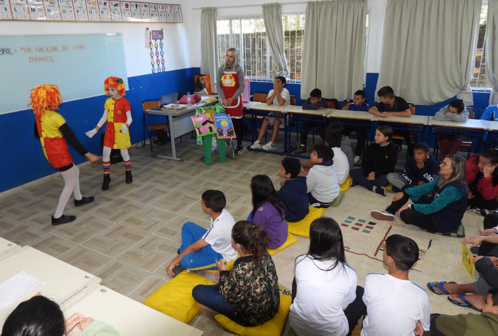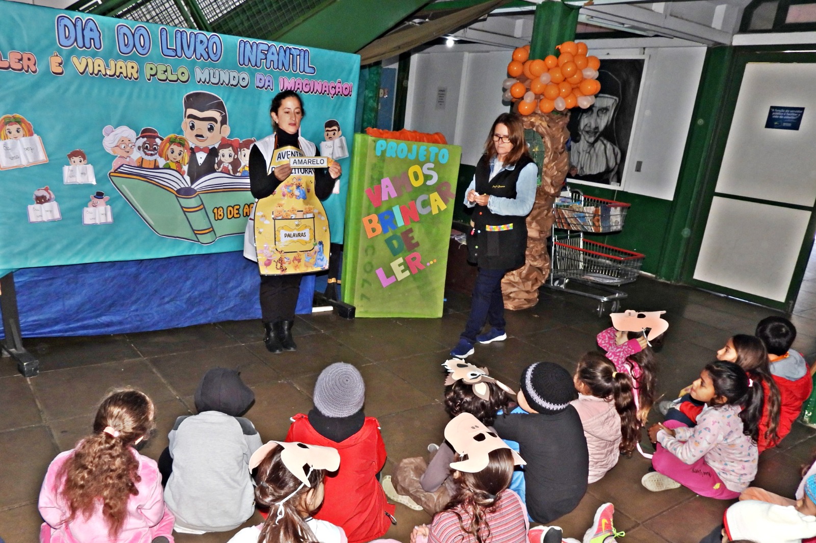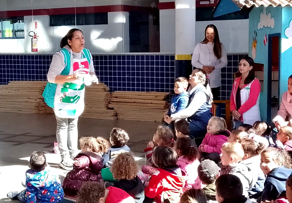 Durante as ações, as crianças e os estudantes cantaram, ouviram histórias, realizaram dramatizações e fizeram apresentações aos colegas e professoras