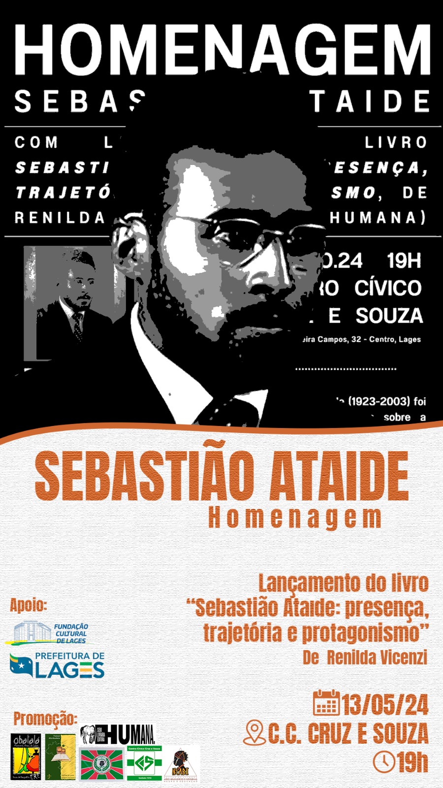 O livro “Sebastião Ataide: presença, trajetória e protagonismo”, de Renilda Vicenzi terá lançamento oficial no dia 13 de maio (segunda-feira) às 19 horas no Centro Cívico Cruz e Souza no centro de Lages-SC.