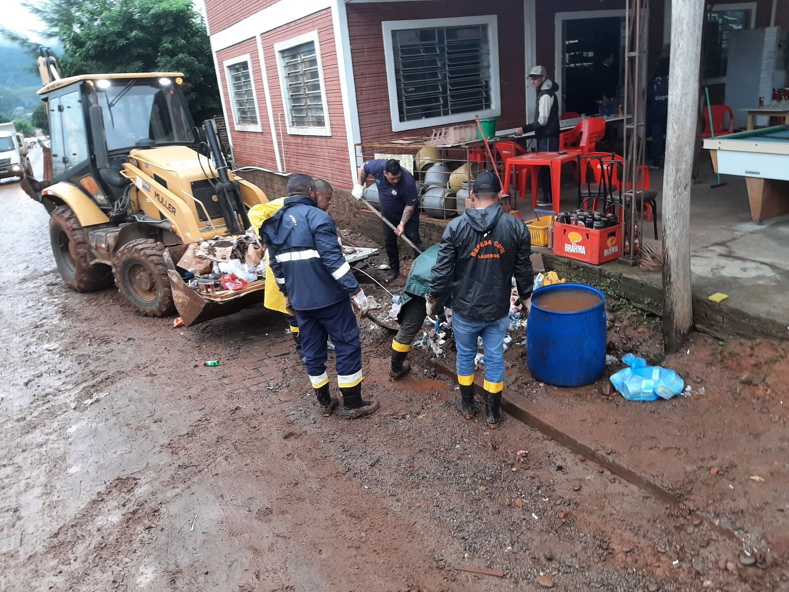 Um dos homens ficou responsável pelo refeitório, enquanto os demais trabalham na limpeza e desobstrução das ruas. Para facilitar o trabalho, a área atingida foi dividida por bairros. Até o momento, seis ruas já foram desbloqueadas e outras estão recebendo o serviço.