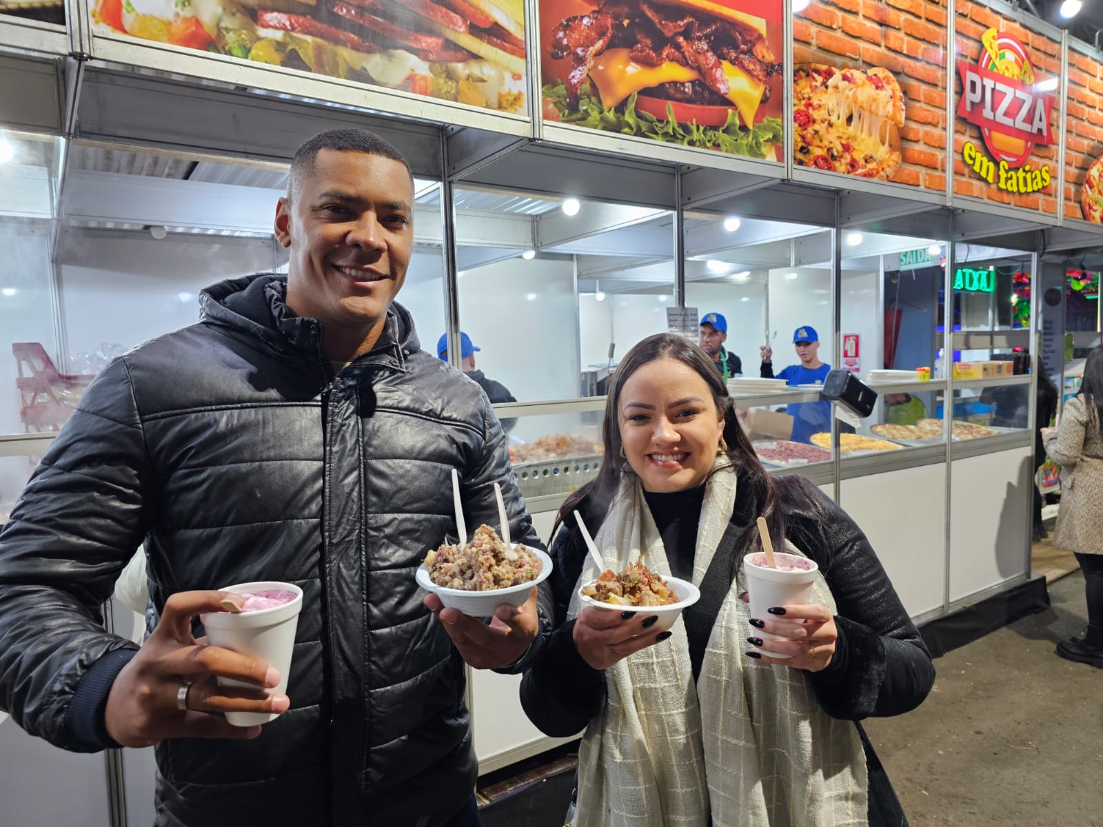 O casal de Itajaí, Lucas Malaquias e Talita de Barros, vem pela segunda vez pra Festa do Pinhão, e aprovaram a gastronomia típica. “Gostamos muito da festa. Além da gastronomia, também nos atrai os bons shows nacionais, a organização, a limpeza do parque e a segurança”, afirma Lucas.