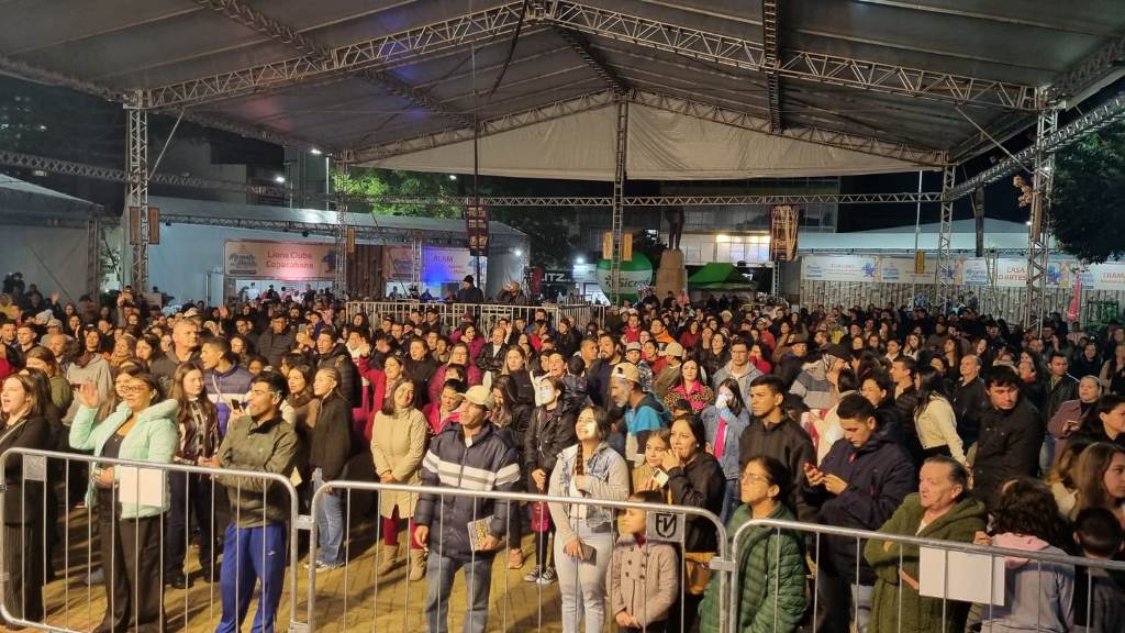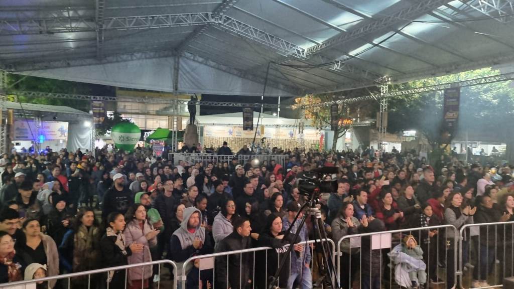 O grande público, que lotou o Recanto do Pinhão, não se importou com o frio que voltou a deixar temperaturas próximas de 0°C. Pelo contrário, estava participativo, de corações abertos e louvando junto com os grupos no palco, na Noite Gospel do Recanto do Pinhão.