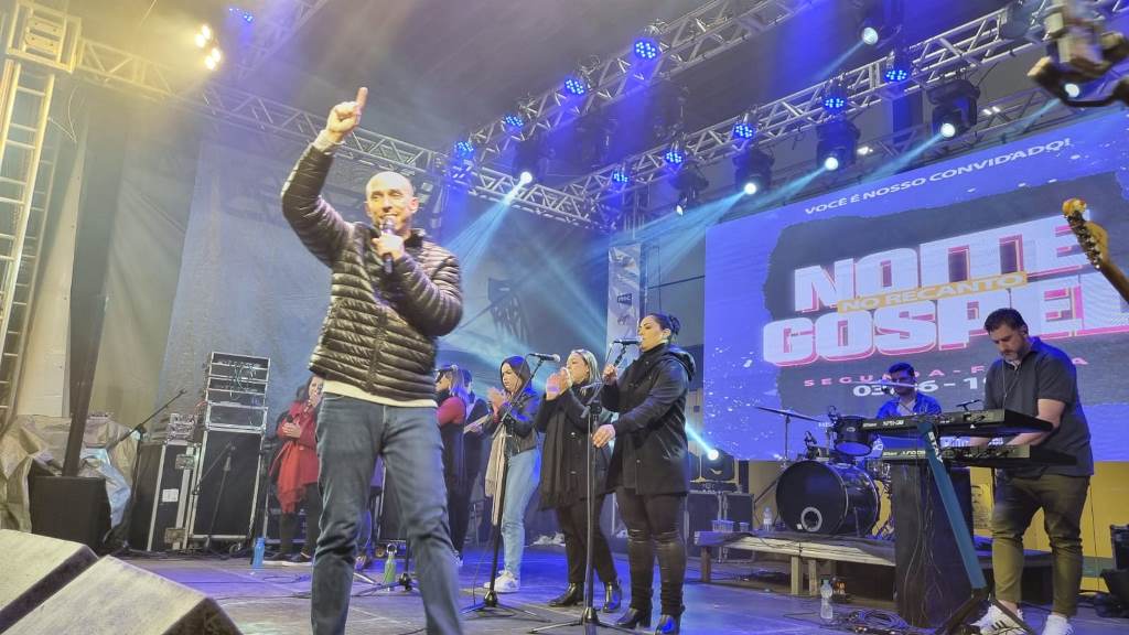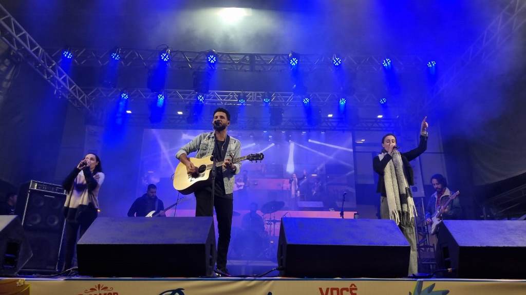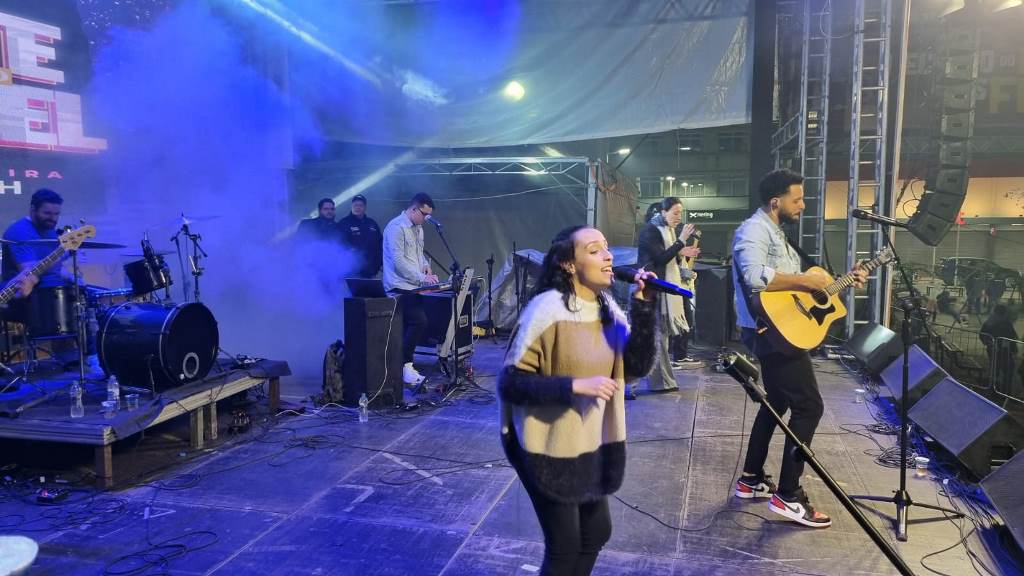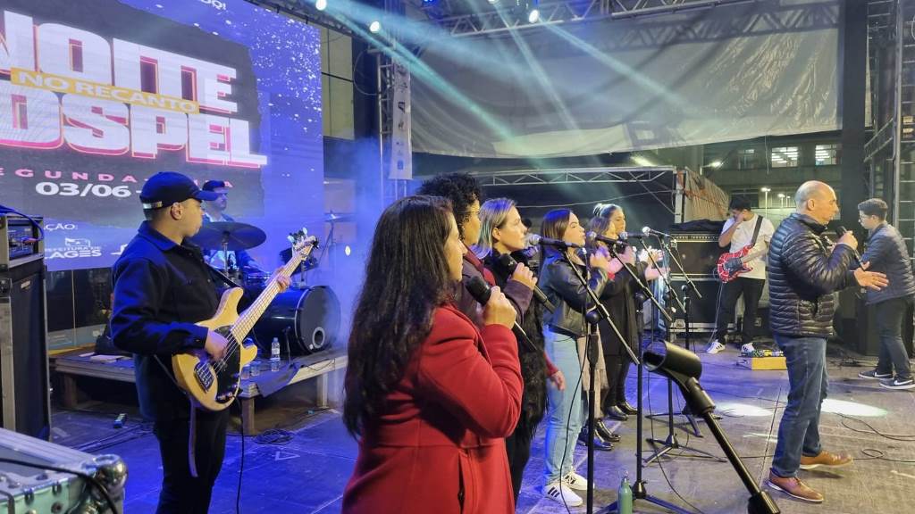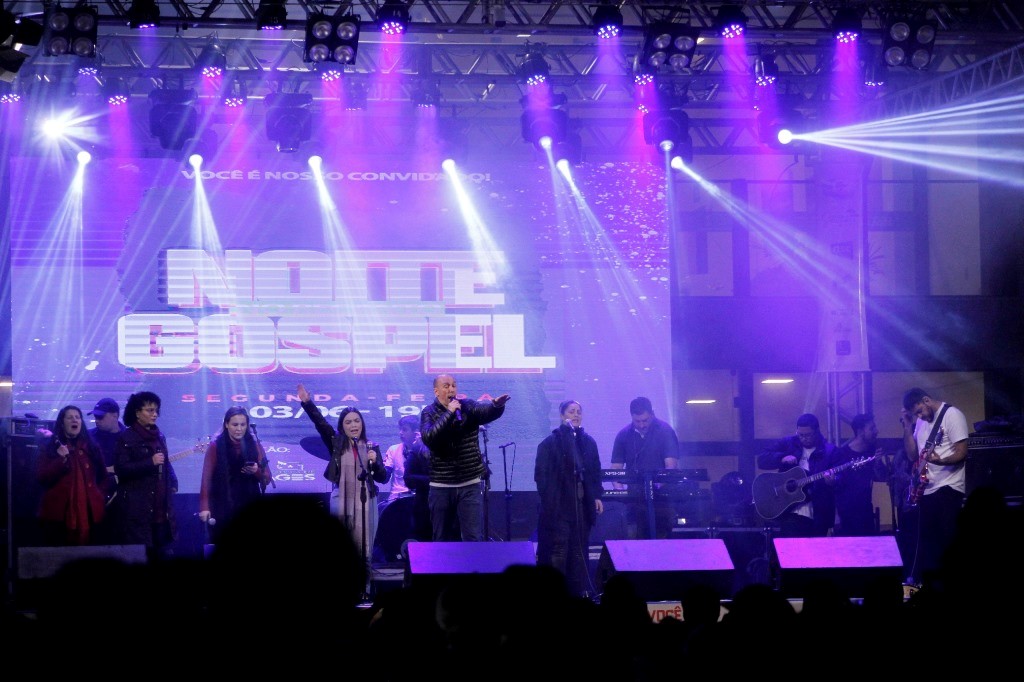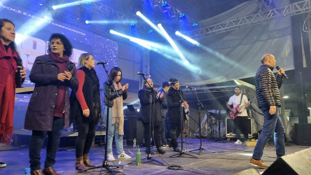 A segunda apresentação da Noite Gospel foi da banda da Comunidade Cristã, com a participação do público presente, que se manteve firme apesar das baixas temperaturas.