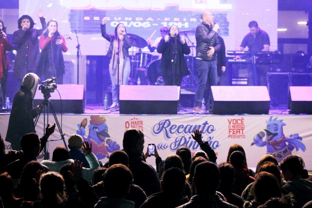 A seleção musical acontece naturalmente com pesquisa dentro dos canais evangélicos, “as quais são selecionadas e começamos os ensaios com os músicos e backing vocals para serem incluídas nas apresentações nos Cultos da Igreja”, comenta o Pastor sobre o repertório do Ministério. Aliás, ressalte-se a integração do público presente no Recanto durante a apresentação, com todos cantando junto e se manifestando com os braços erguidos, em sinal de adoração. “Estamos muito felizes de estar participando desta Noite Gospel aqui no Recanto do Pinhão, pois a Festa é um evento abençoado, assim como sempre somos convidados para a programação de Natal que acontece aqui na Praça João Costa.”