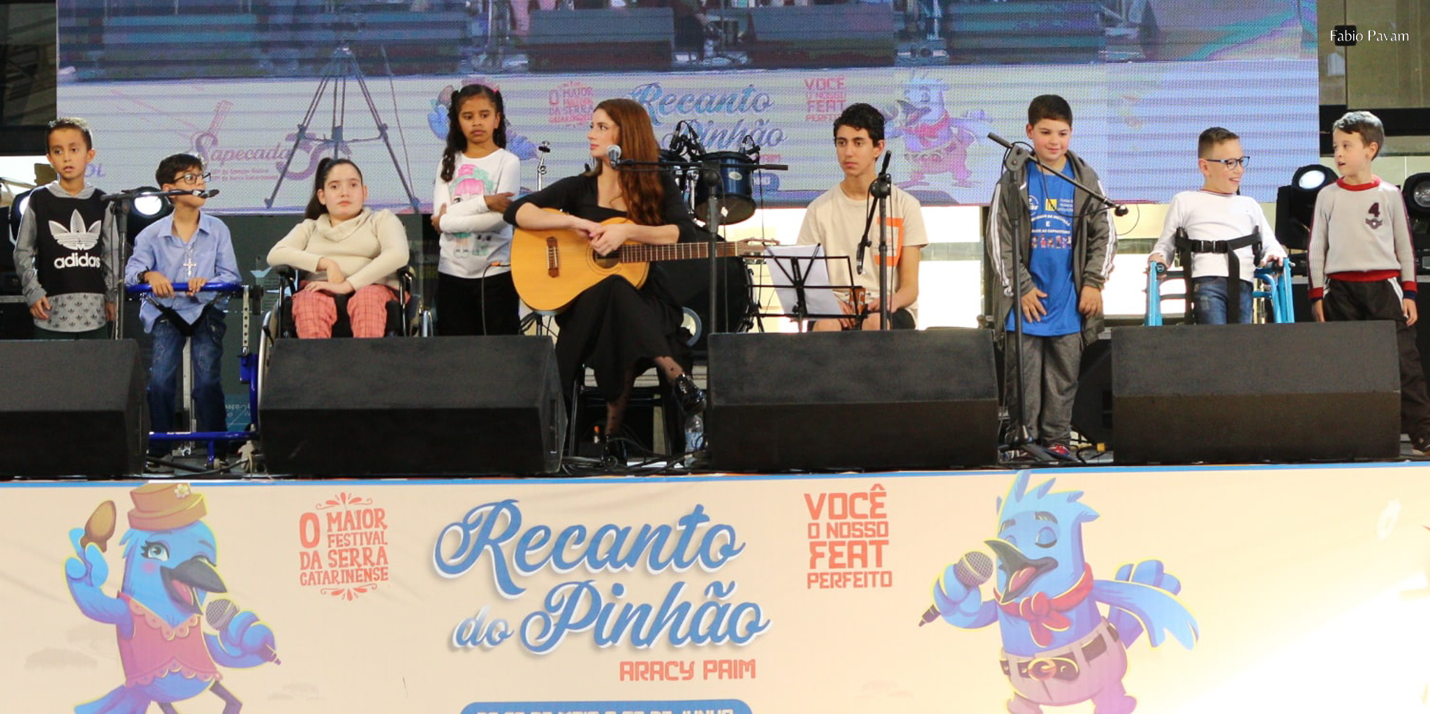 Há muitos anos participando da gastronomia nos dias de Recanto do Pinhão, a Asdf também proporcionou ao público cativo da Festa do Pinhão e familiares, uma apresentação única e cheia de sorrisos da cantora, compositora e também instrutora de canto, Aline Amorim com seus alunos e alunas da instituição do bairro da Bates na tarde desta quinta-feira (6).