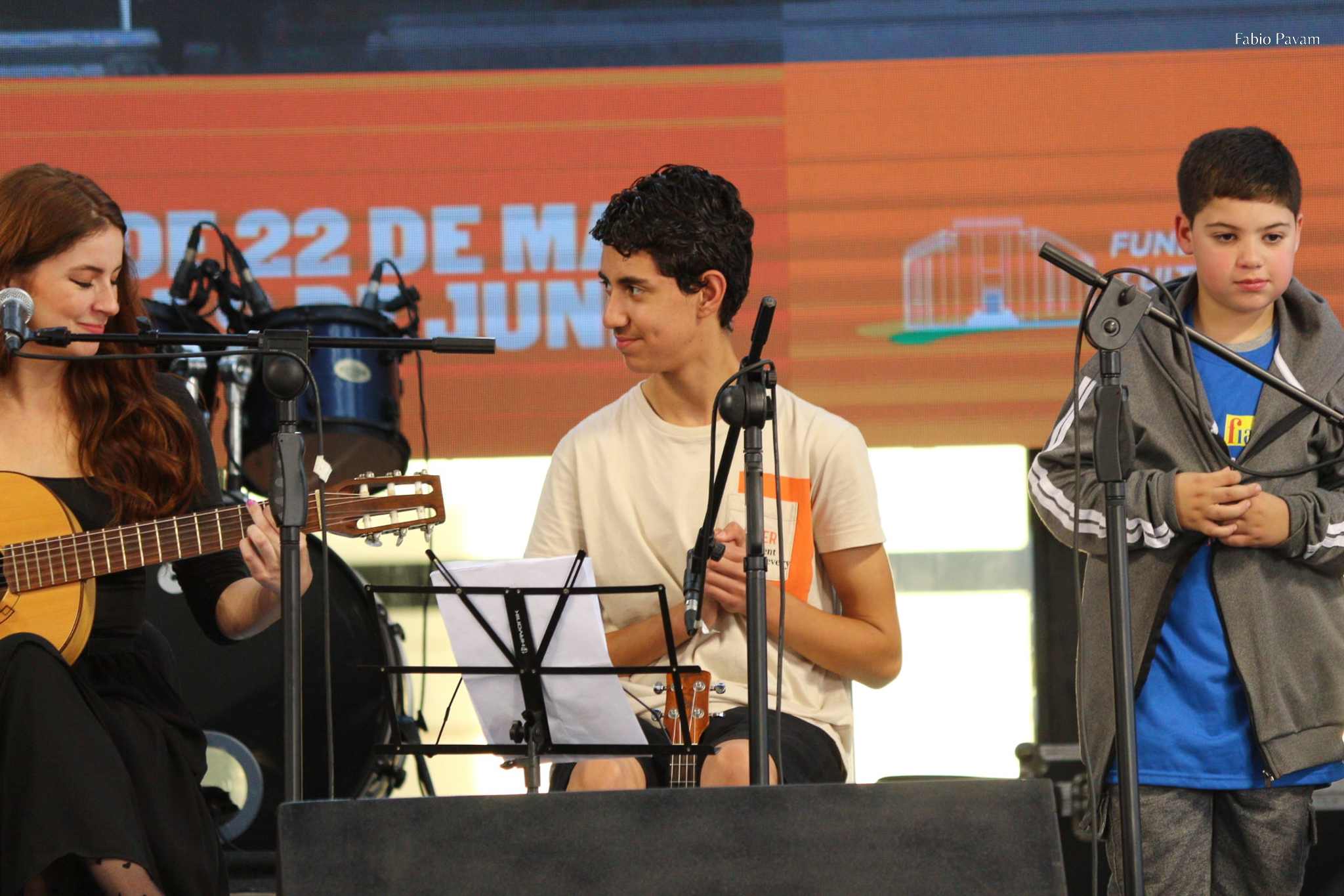 Acompanhada pelos artistas Lucas (7), Lucca (9), Maria Luiza (14), Beatriz (9), Yuri José (14), João Guilherme (7), Rene (10), Bernardo (10) e Leandro (6), Aline puxou um repertório que não ficou somente no palco, pais alegres e orgulhosos aumentavam o coro em um set musical com muita MPB.