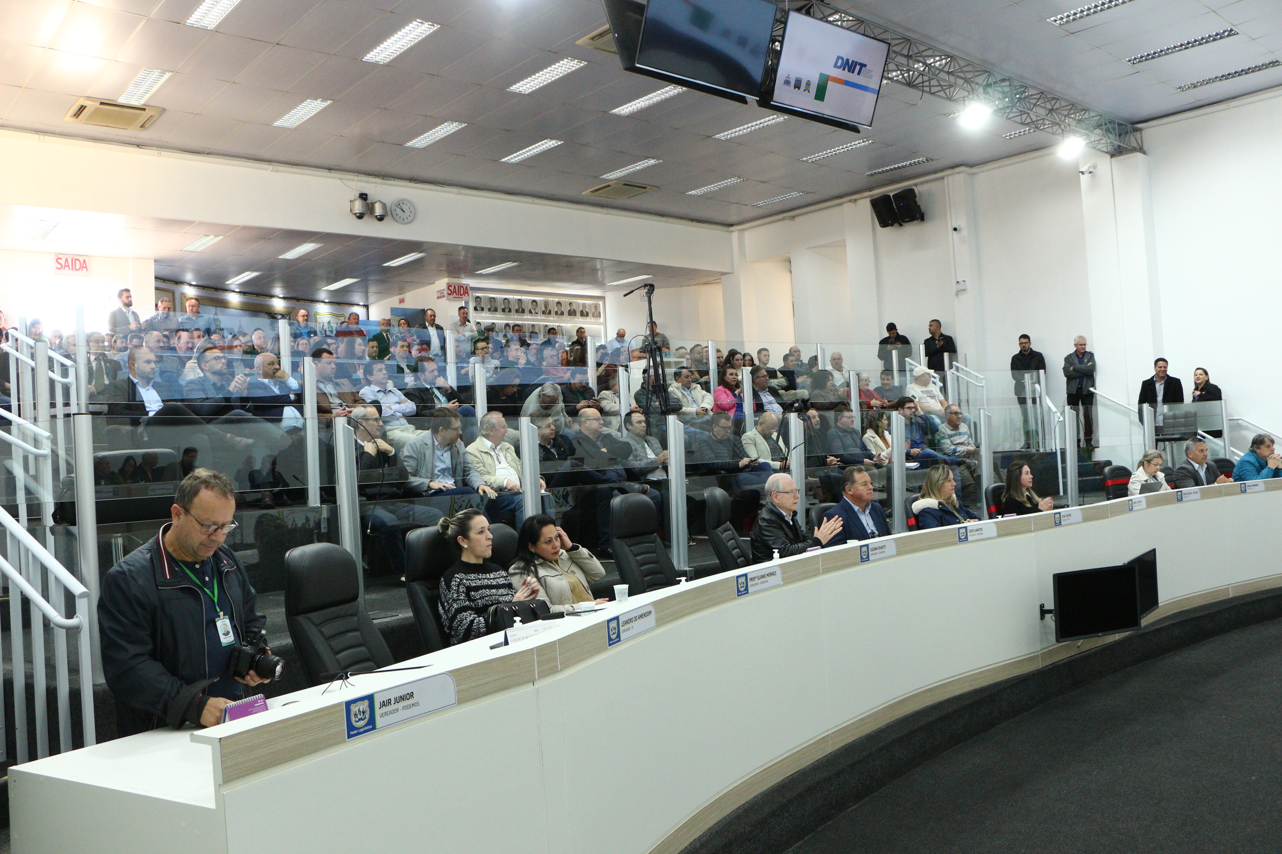 O superintendente do Departamento Nacional de Infraestrutura de Transportes (DNIT) em Santa Catarina, o engenheiro Alysson Rodrigo de Andrade, participou da reunião e explanou sobre uma das principais obras de infraestrutura em rodovia no Estado, muito aguardada.