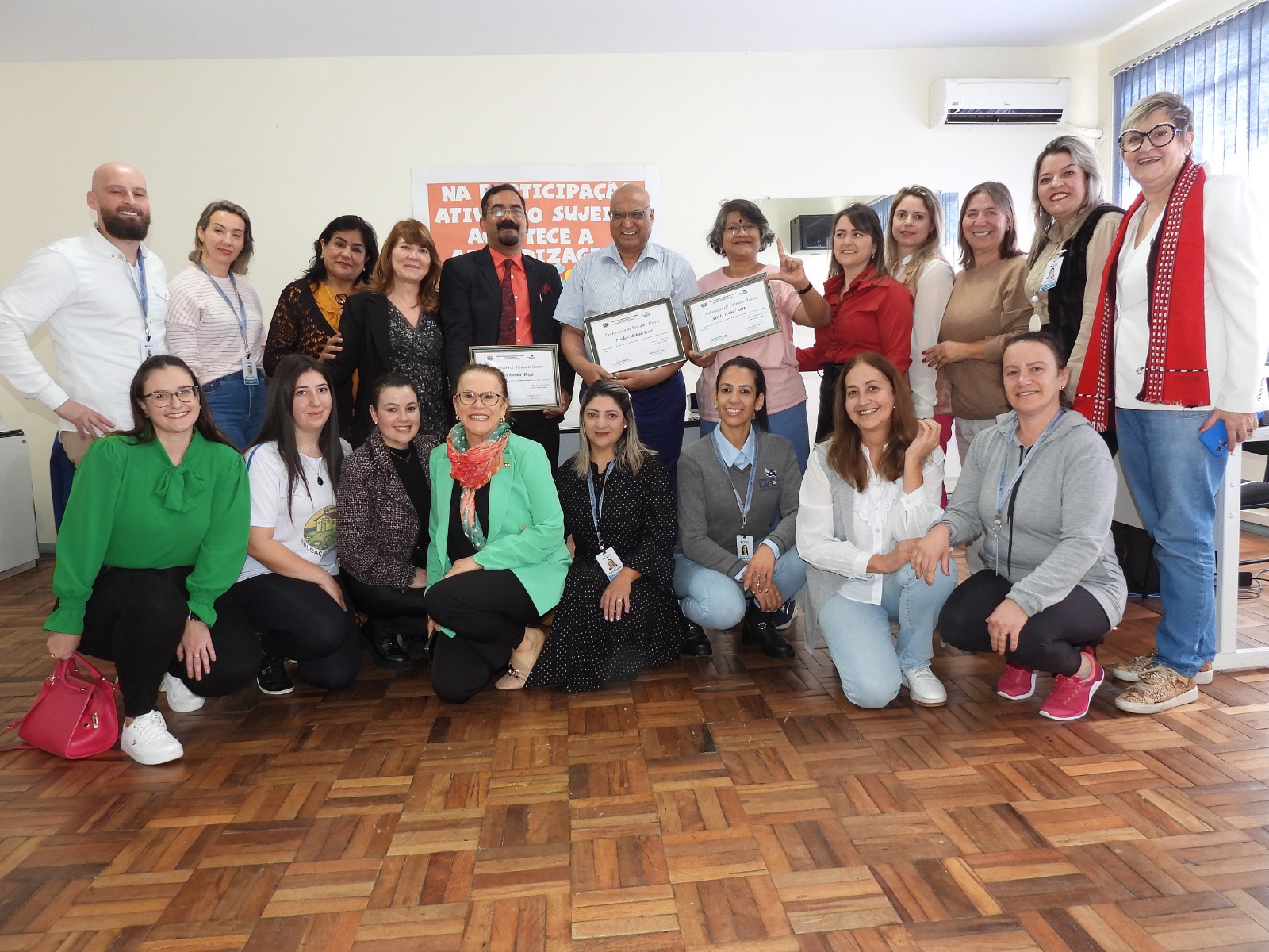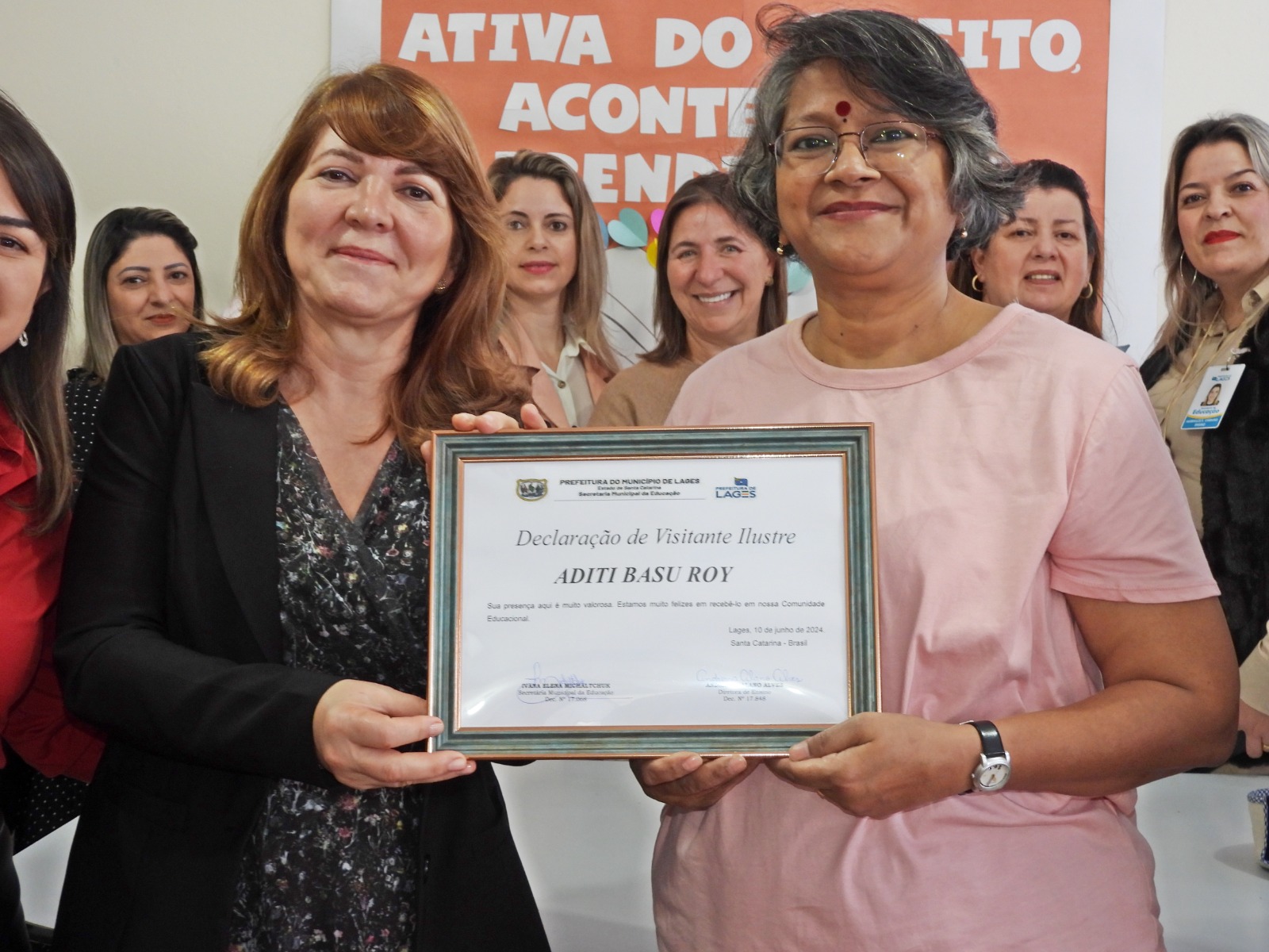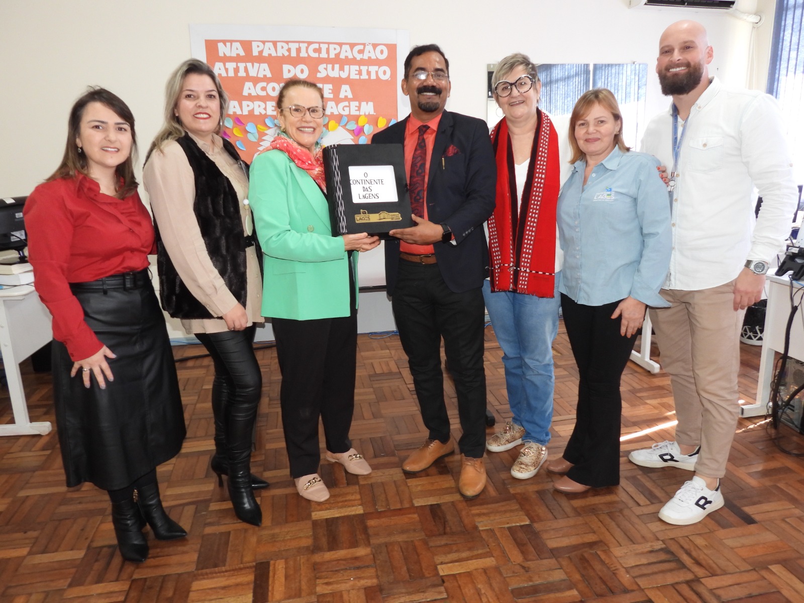 Na SMEL, durante a visita, os indianos receberam exemplares do livro “O Continente das Lagens”, de Licurgo Costa. Além disso, conheceram o setor de Ensino e o Núcleo Municipal de Educação Permanente (NEEP) da SMEL composto por professoras e professores formadores, organizados por áreas da Educação Básica Municipal.