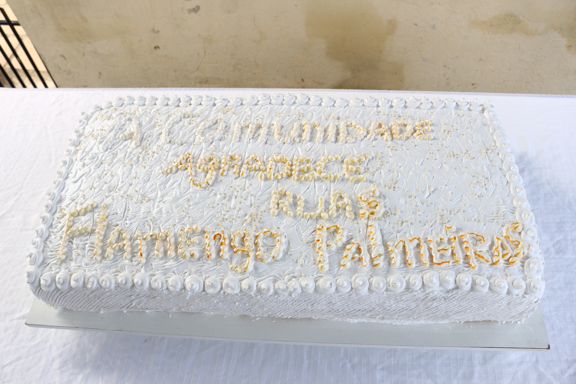 O trecho concluído da rua Palmeira também foi oficialmente entregue aos moradores na manhã deste sábado e a próxima etapa é a conclusão da rua Corinthians. Para celebrar a entrega das obras e também o aniversário do prefeito, a Associação de Moradores compartilhou um bolo de agradecimento com a comunidade, sendo que os próprios moradores contribuíram com a doação dos ingredientes para essa confraternização.