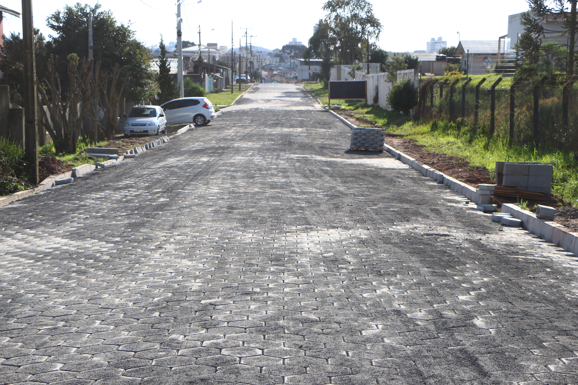 Depois de implantada a rede pluvial, de escoamento das águas das chuvas, e feita a terraplanagem, está sendo feito agora a pavimentação com lajota. A empresa executora das obras é a Base Forte, vencedora da licitação pública aberta pela Prefeitura de Lages. O investimento nestas obras é de R$ 347.572,29.
