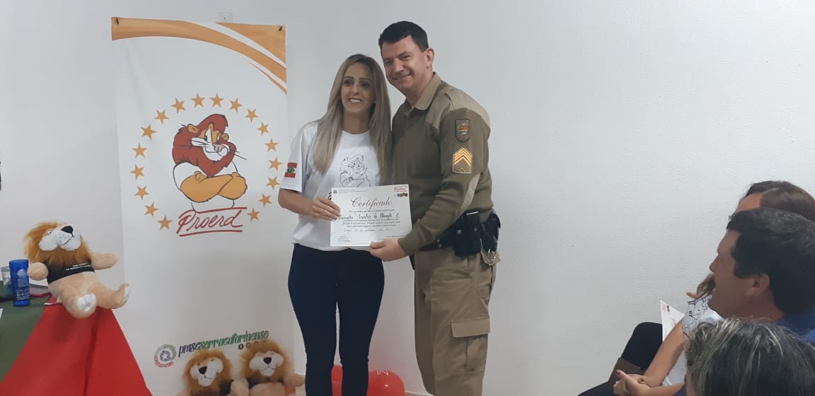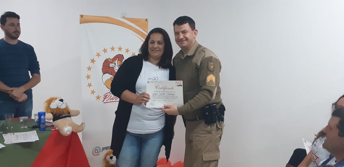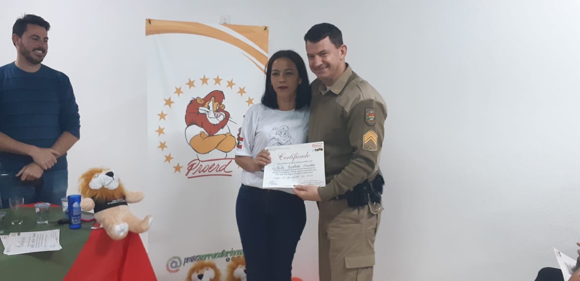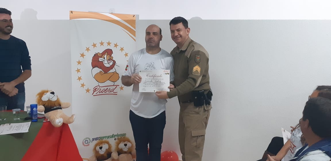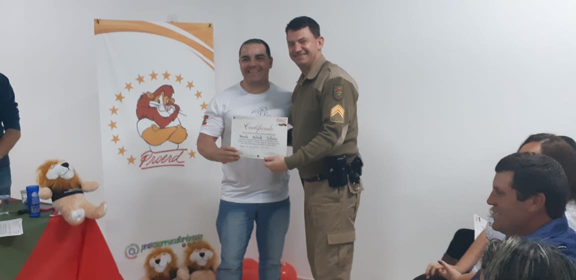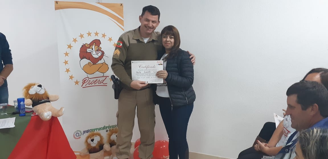 Uma noite de comemoração e confraternização. Assim foi a solenidade de formatura da turma do Programa Educacional de Resistência às Drogas e à Violência, o Proerd Pais, nesta terça-feira (15 de outubro) nas dependências do 6º Batalhão de Polícia Militar (PM). A iniciativa envolveu a Polícia Militar de Lages e a Prefeitura, através do Centro de Referência de Assistência Social, Jandira Amorim (CRAS I, do bairro Popular). Os cerca de 20 formandos são pais e mães das crianças e adolescentes que participam das atividades deste equipamento de assistência social e do território de abrangência.