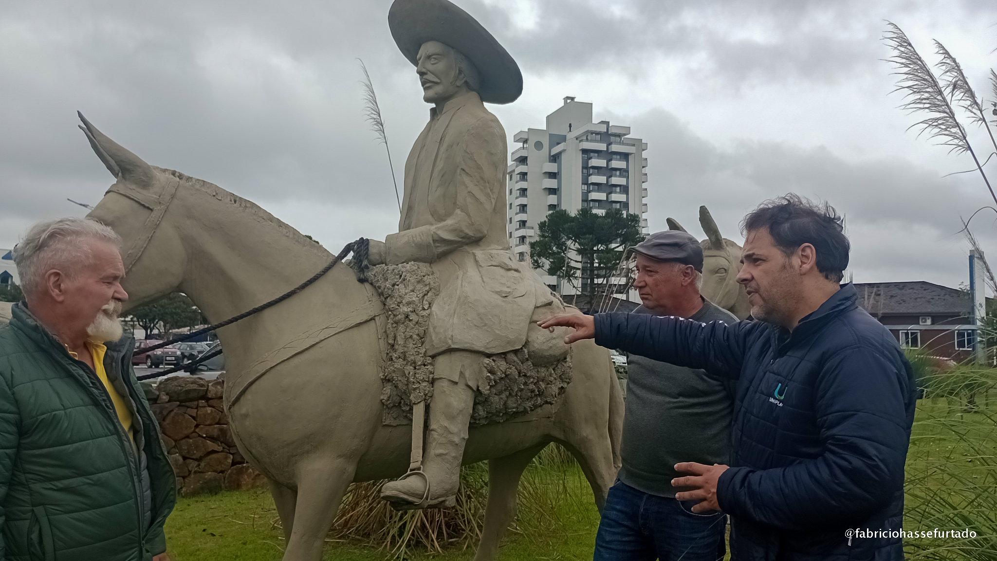 O prefeito do município gaúcho de Dom Feliciano, Clenio Boeira da Silva esteve em Lages na manhã desta sexta-feira (21) para conhecer o artista plástico José Cristóvão Batista e suas obras, principalmente os monumentos históricos espalhados pela cidade.