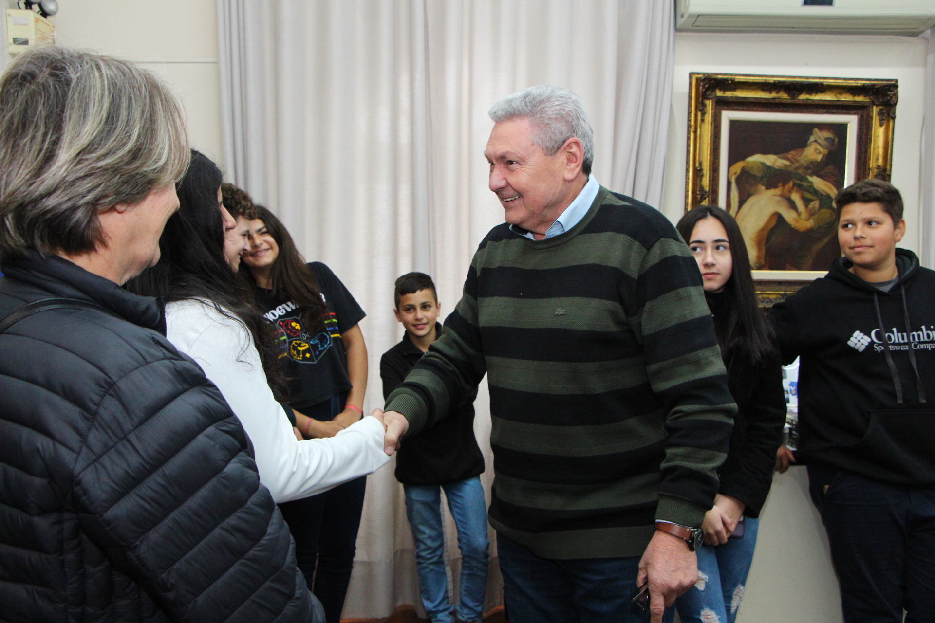Cerca de 20 estudantes do 6º ao 9º anos do ensino fundamental da EMEB Itinerante Maria Alice Wolff de Souza, da localidade de Rancho de Tábuas, visitaram as instalações da prefeitura de Lages, na manhã desta terça-feira (15). Na oportunidade os estudantes fizeram algumas perguntas ao prefeito Antonio Ceron sobre a gestão do Município.
