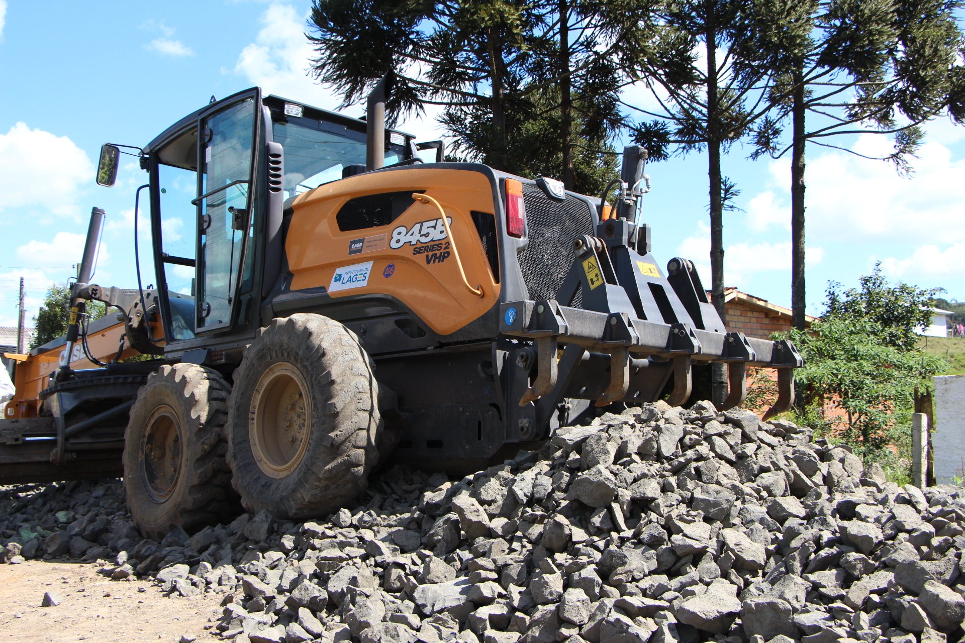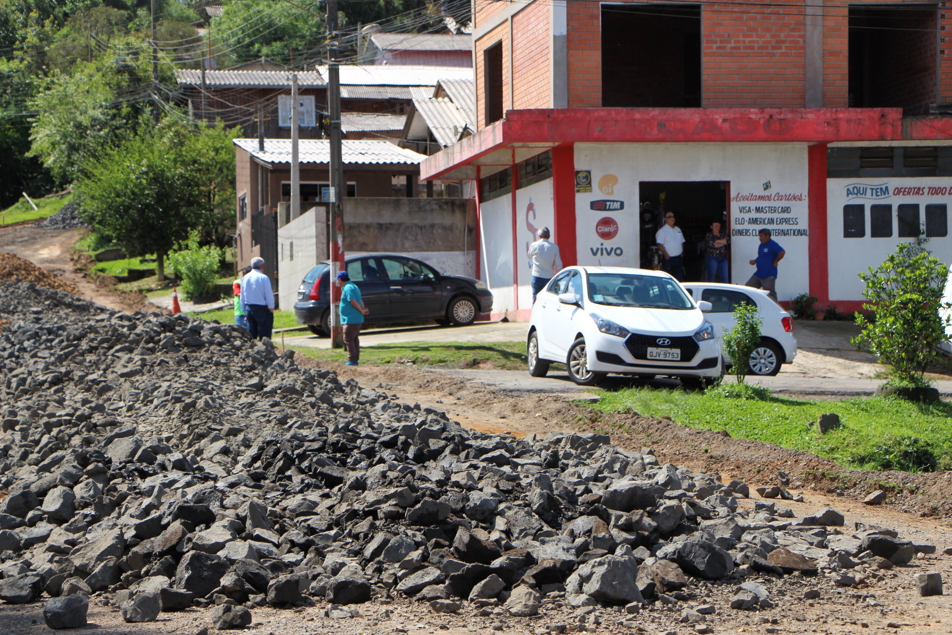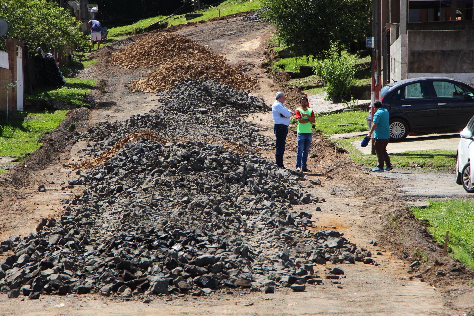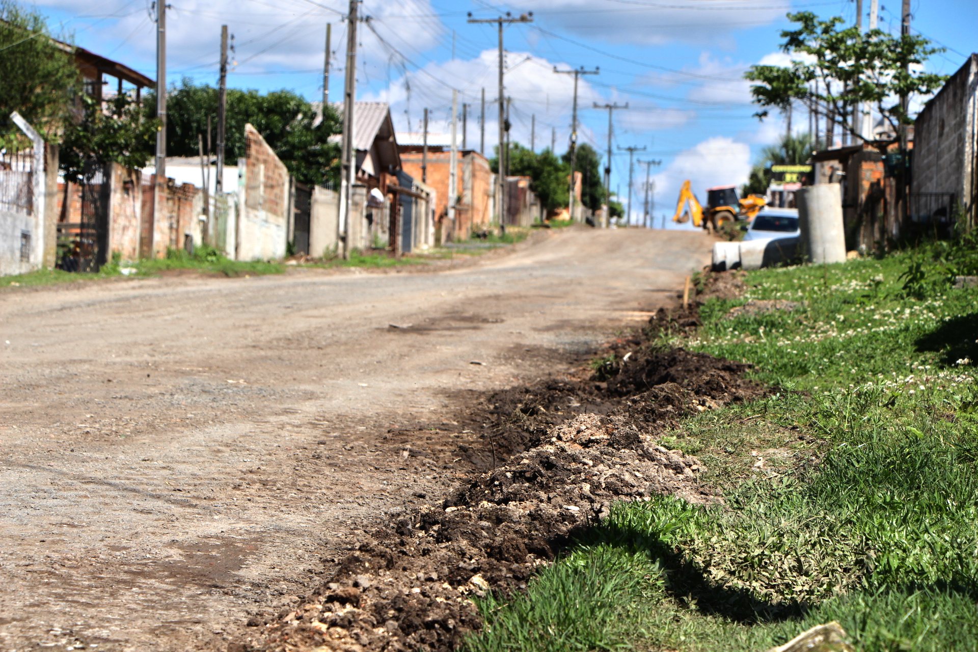 A rede pluvial também já foi implantada na rua Sérgio Antunes de Oliveira e nas ruas transversais. Os trabalhos de patrolamento igualmente já foram feitos e agora está sendo realizada a base do leito das vias, com macadame (lasca de pedra e cascalho).