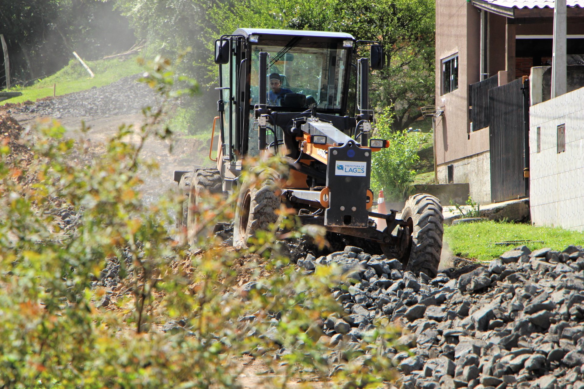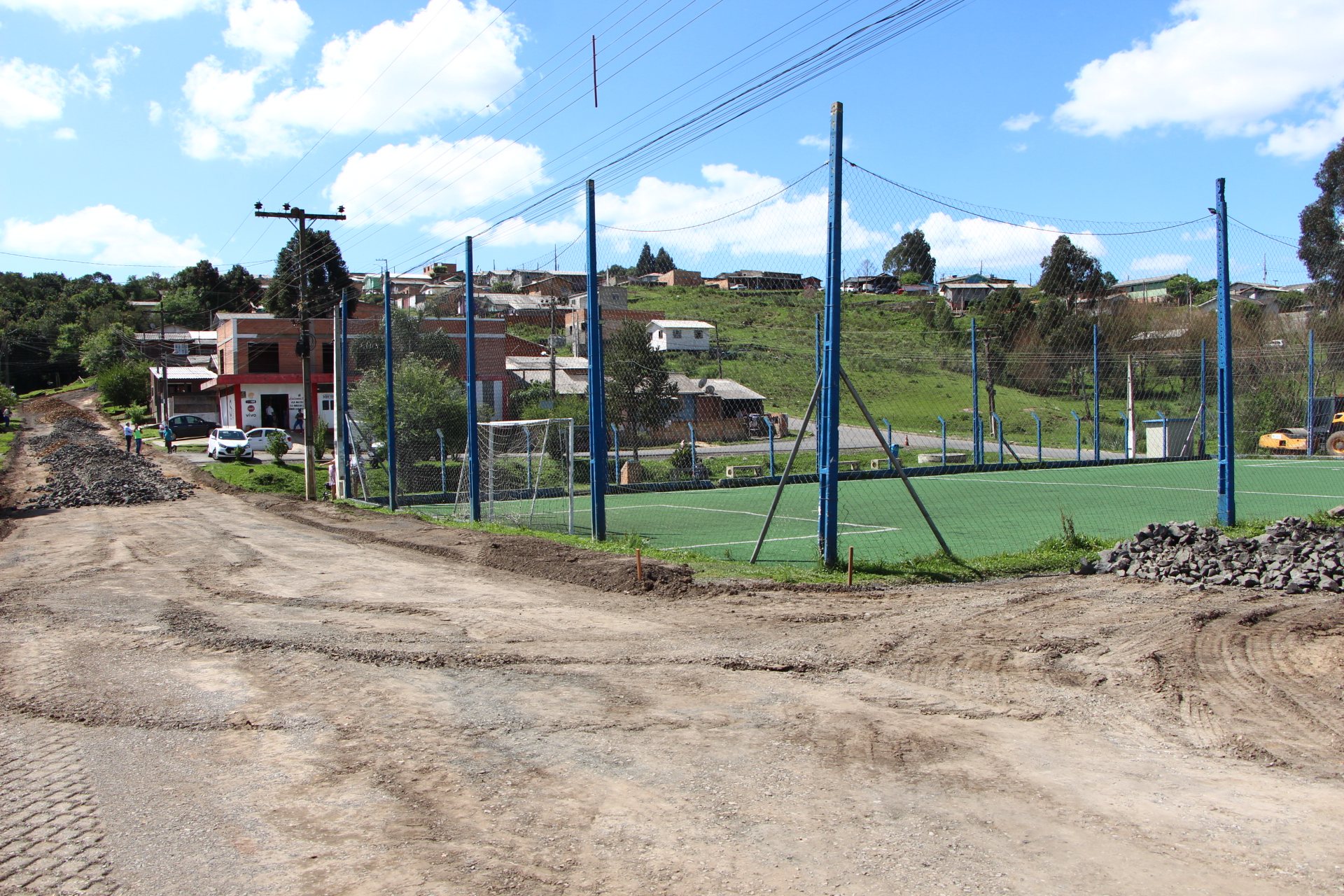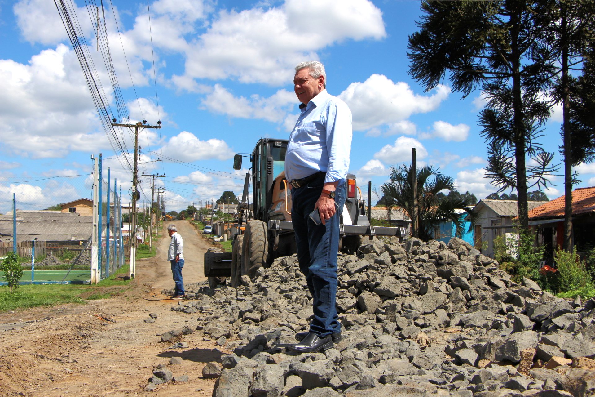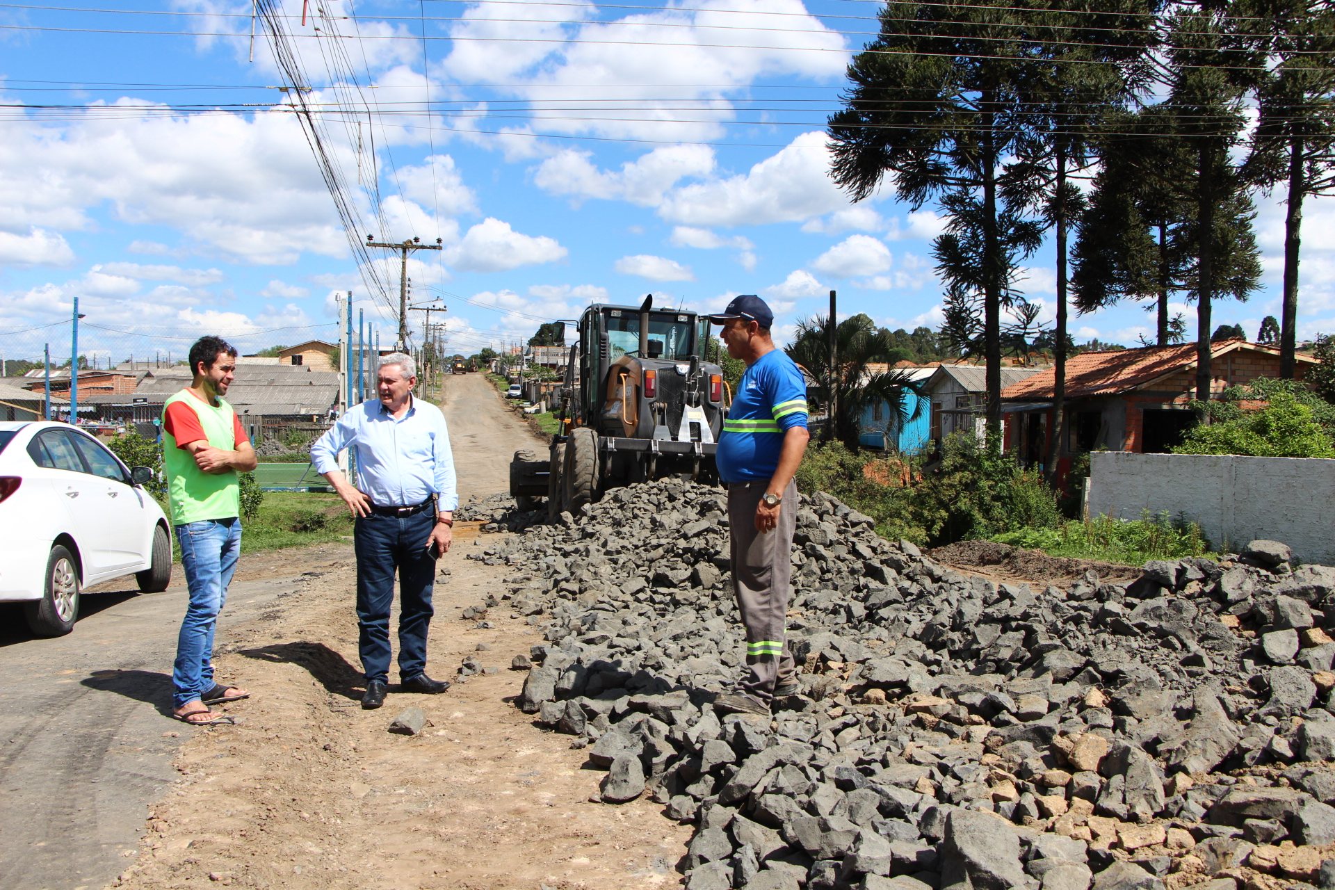 A rede pluvial também já foi implantada na rua Sérgio Antunes de Oliveira e nas ruas transversais. Os trabalhos de patrolamento igualmente já foram feitos e agora está sendo realizada a base do leito das vias, com macadame (lasca de pedra e cascalho).