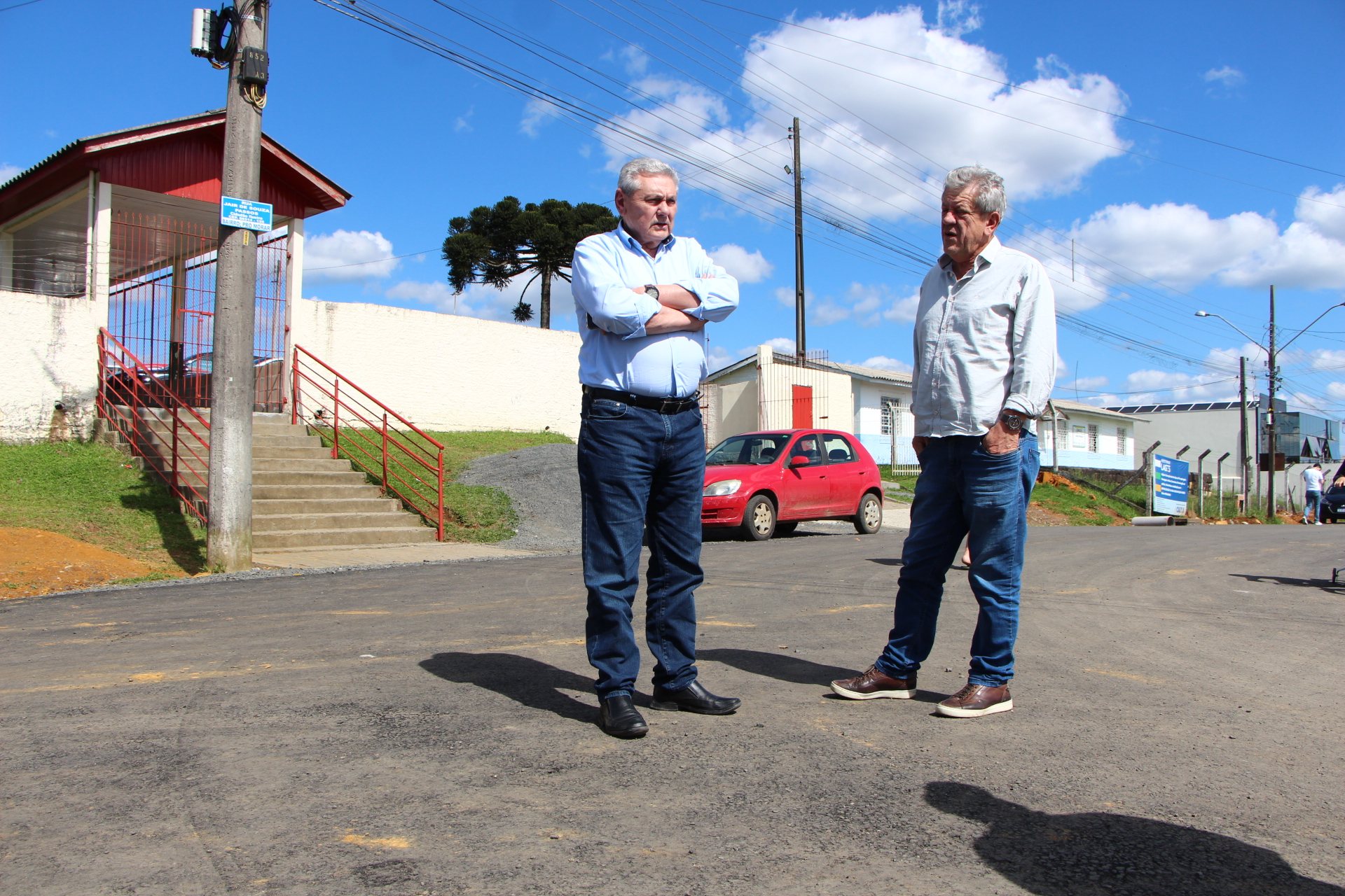 Durante a vistoria das obras, o prefeito Antonio Ceron, juntamente com o secretário de Obras, João Alberto Duarte, conversaram com moradores residentes e anunciaram, para breve, o início das obras de reurbanização da rua Otávio Córdova Ramos (transversal à rua Jair de Souza Passos).