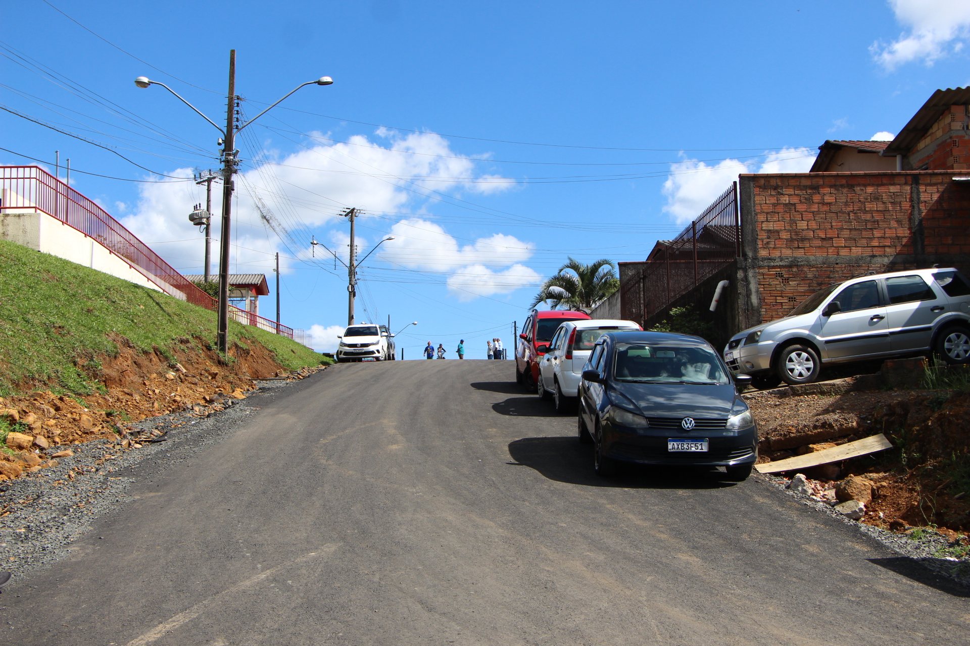 O leito da rua já foi asfaltado, assim cmo implantada a rede pluvial (de escoamento das águas das chuvas). O que falta são os ajustes finais nas faixas de passeio público (calçadas) e a implantação da sinalização vertical e horizontal de trânsito.