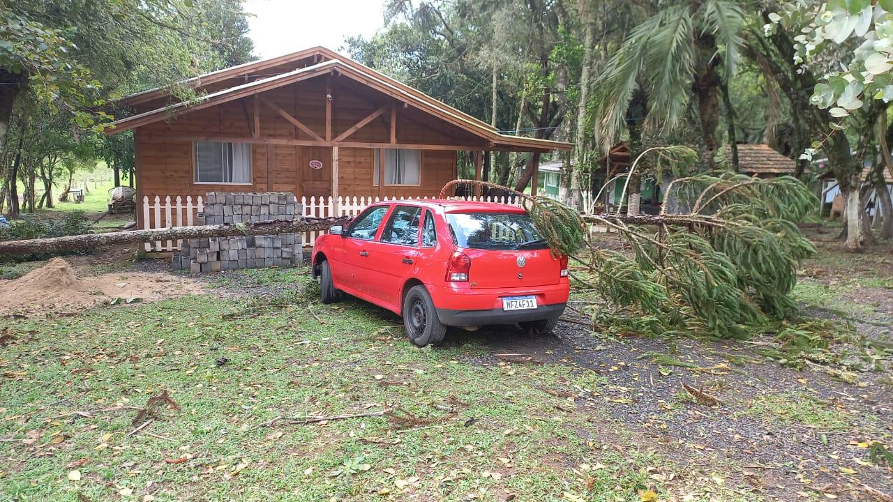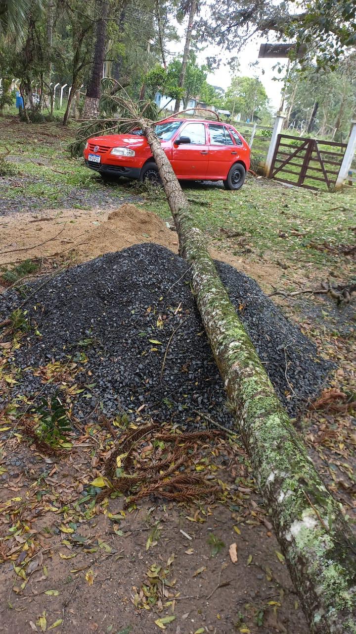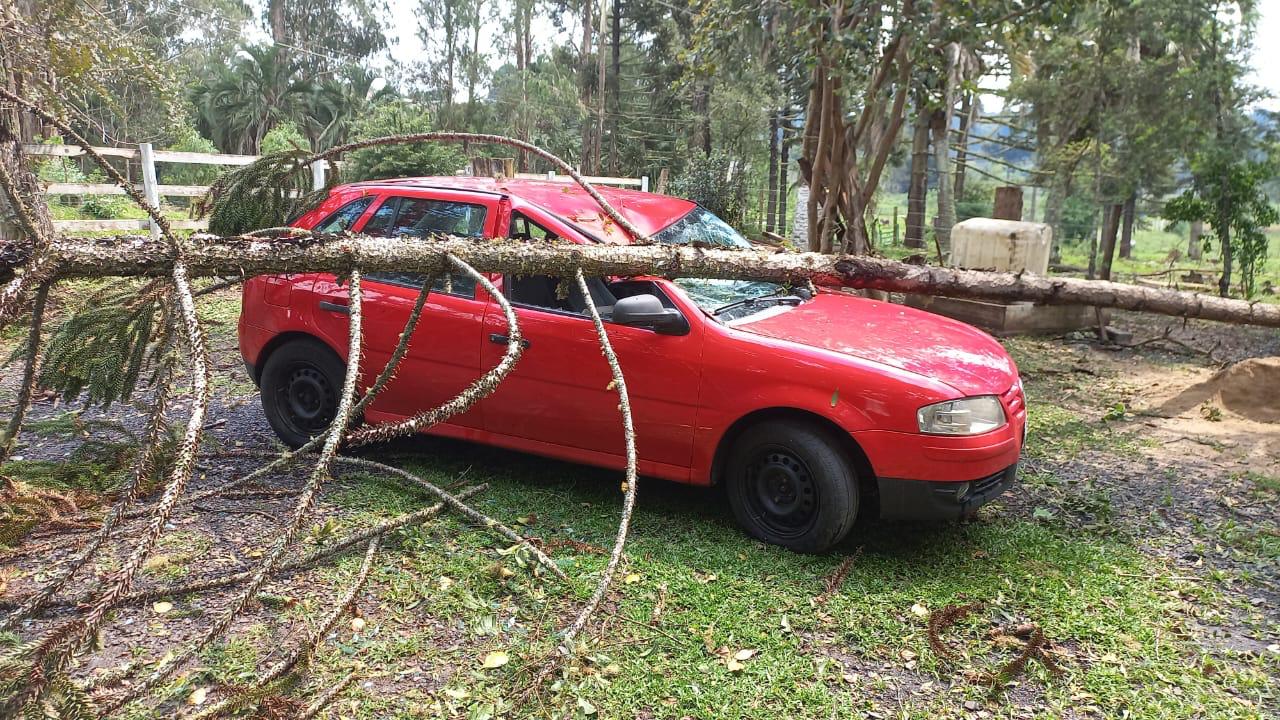 Houve quedas de árvores registradas sobre automóvel e a fiação elétrica, o que demandou o acionamento do corpo de bombeiros e de equipe da Celesc.