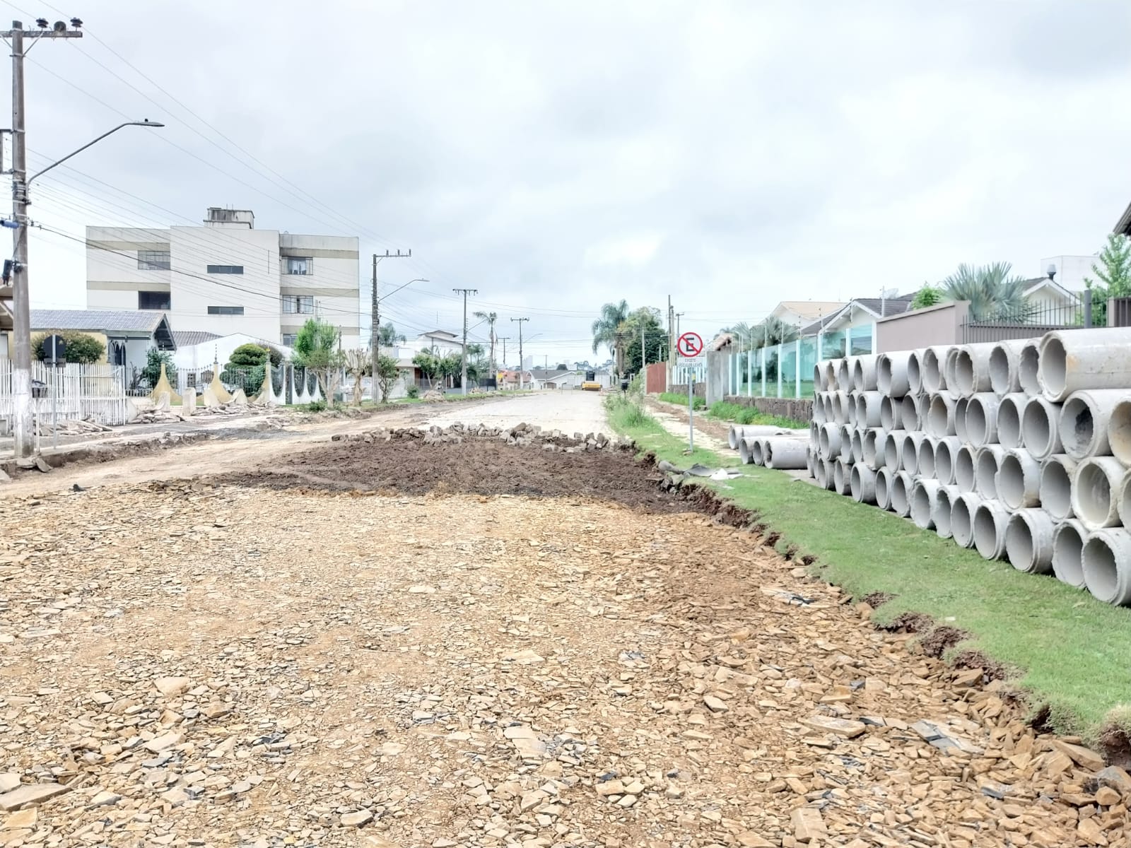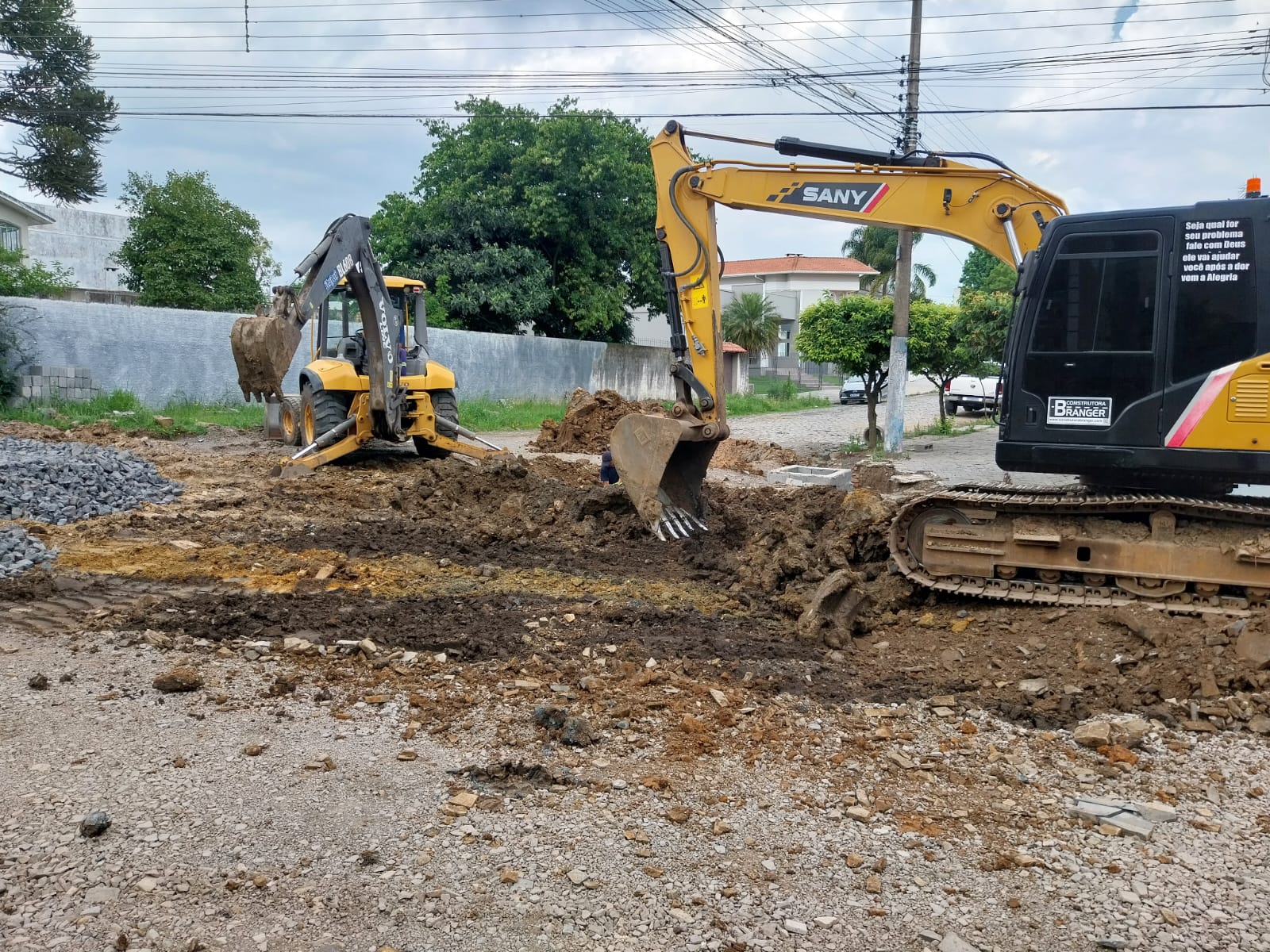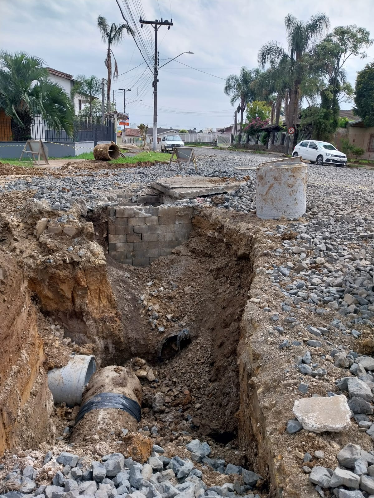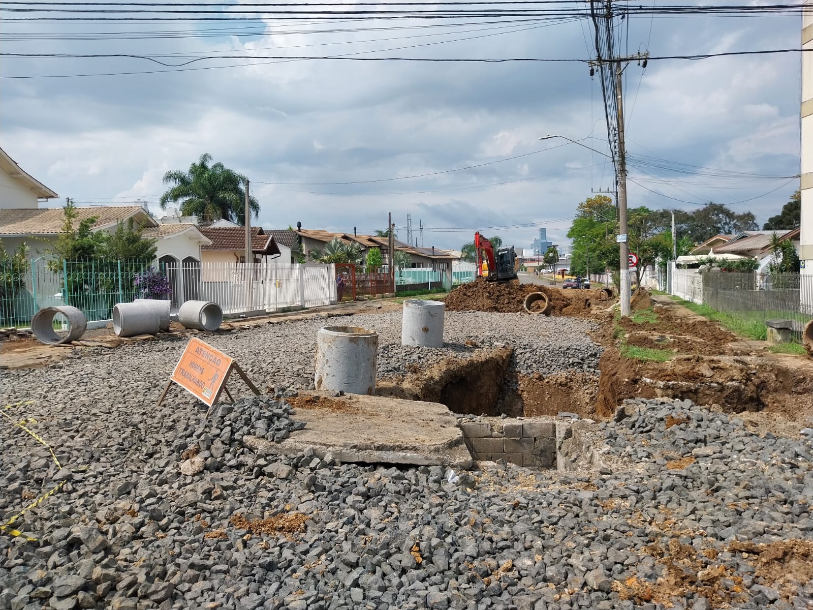 A execução de obras de drenagem e de implantação da rede pluvial, incluindo a construção de uma galeria, fazem parte do conjunto estrutural do projeto de reurbanização da rua Jairo Luiz Ramos, no bairro Sagrado Coração de Jesus.