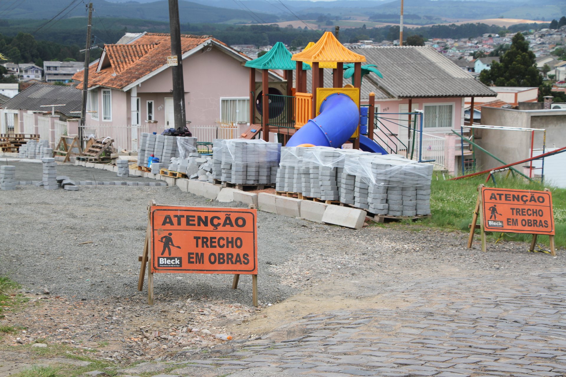 Trecho da rua dos Franciscanos também já foi reurbanizado. Pelo menos mais duas ruas do Santo Antônio já foram licitadas e têm ordem de serviço assinada pelo Prefeito Antonio Ceron.
