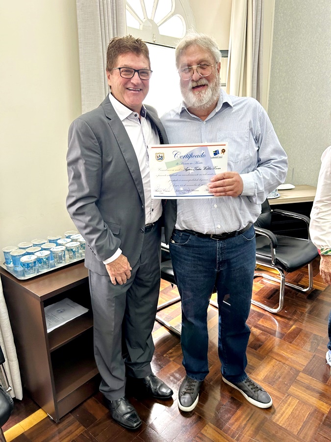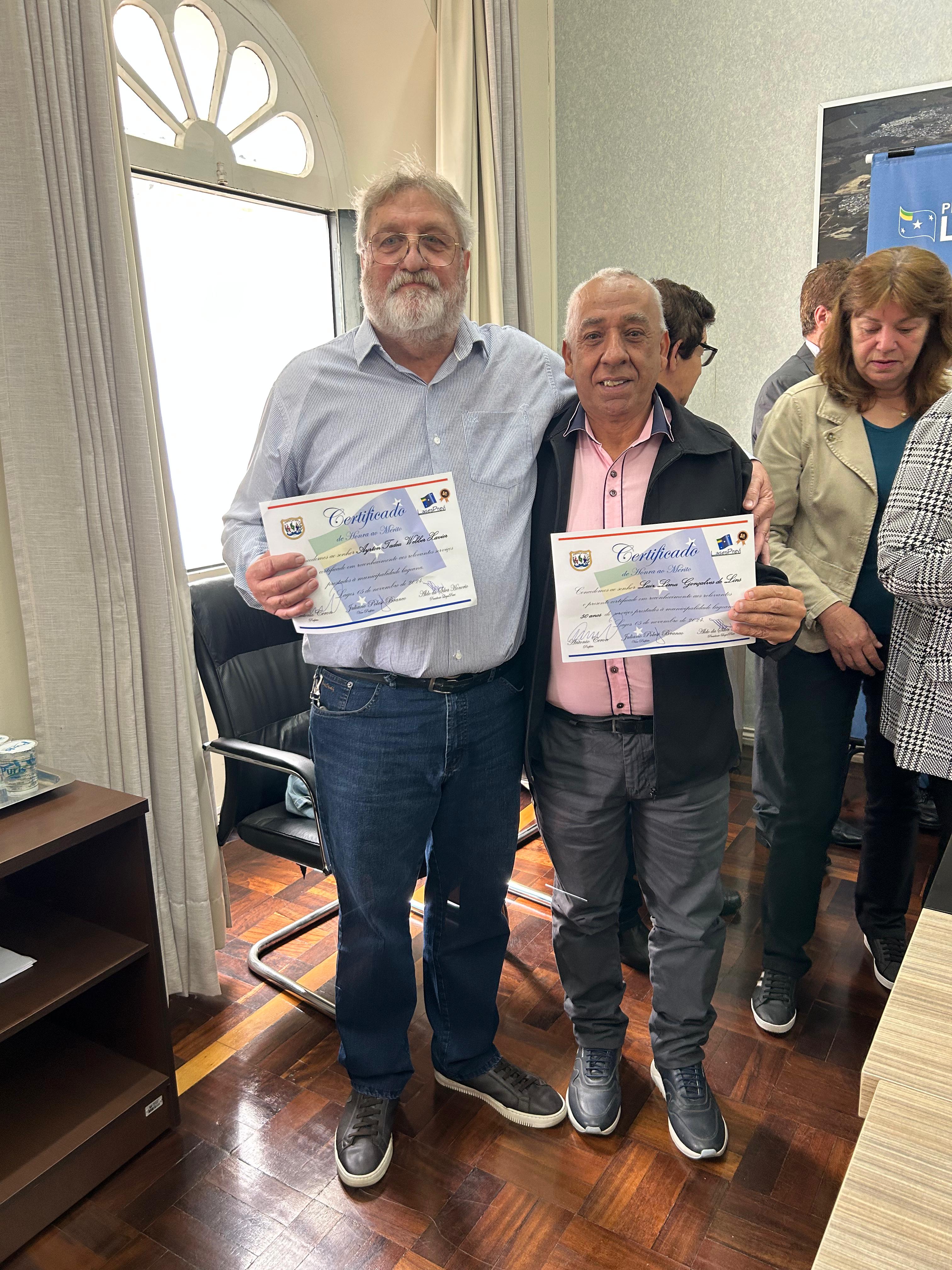 Foto: Emellin Camargo Com mais de três décadas de dedicação ao município eles receberam certificados de Honra ao Mérito em uma cerimônia especial no gabinete do prefeito