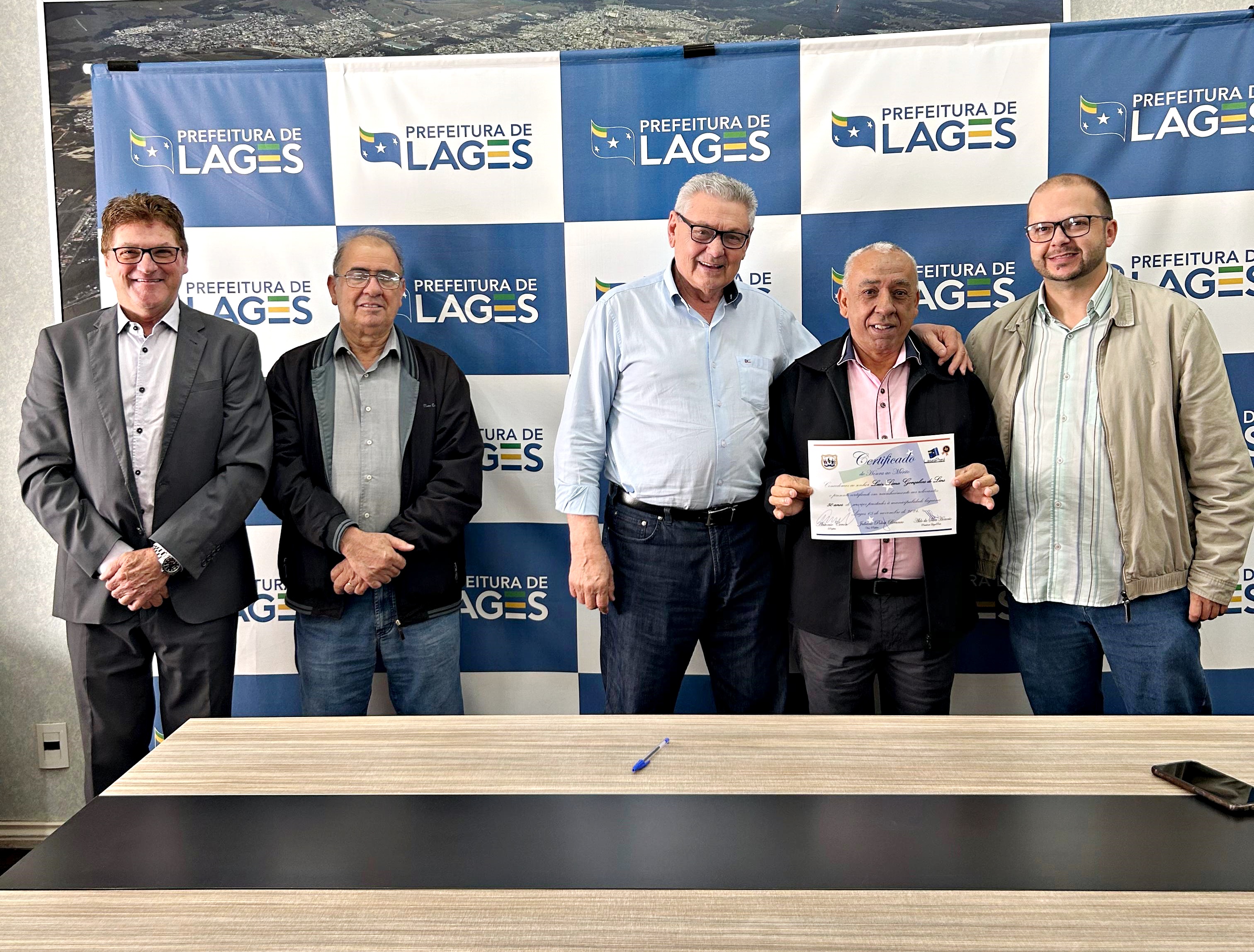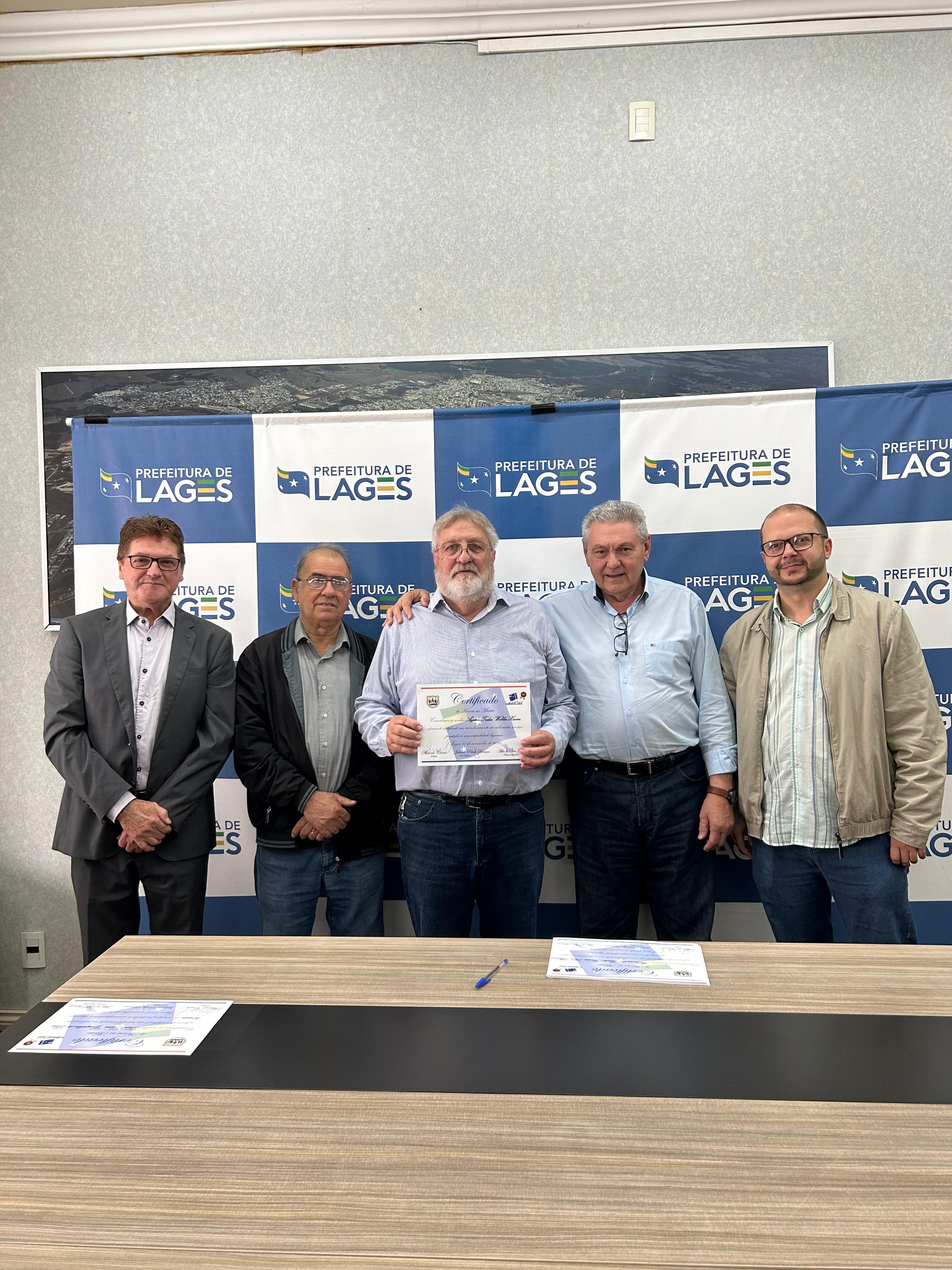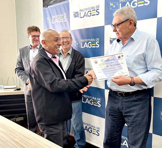 Além da homenagem aos aposentados, o prefeito também entregou um certificado de reconhecimento pelo trabalho prestado ao servidor Luiz Lima Lins, que completou 50 anos de carreira na prefeitura de Lages e continua na ativa. “Minha carteira foi assinada no dia 11 de novembro de 1974. Neste ano completo 50 anos de prefeitura e minha vida toda está aqui dentro. Amo demais o meu trabalho, por isso não me vejo fazendo outra coisa, assim como não me vejo parando de trabalhar”, conta Luiz.