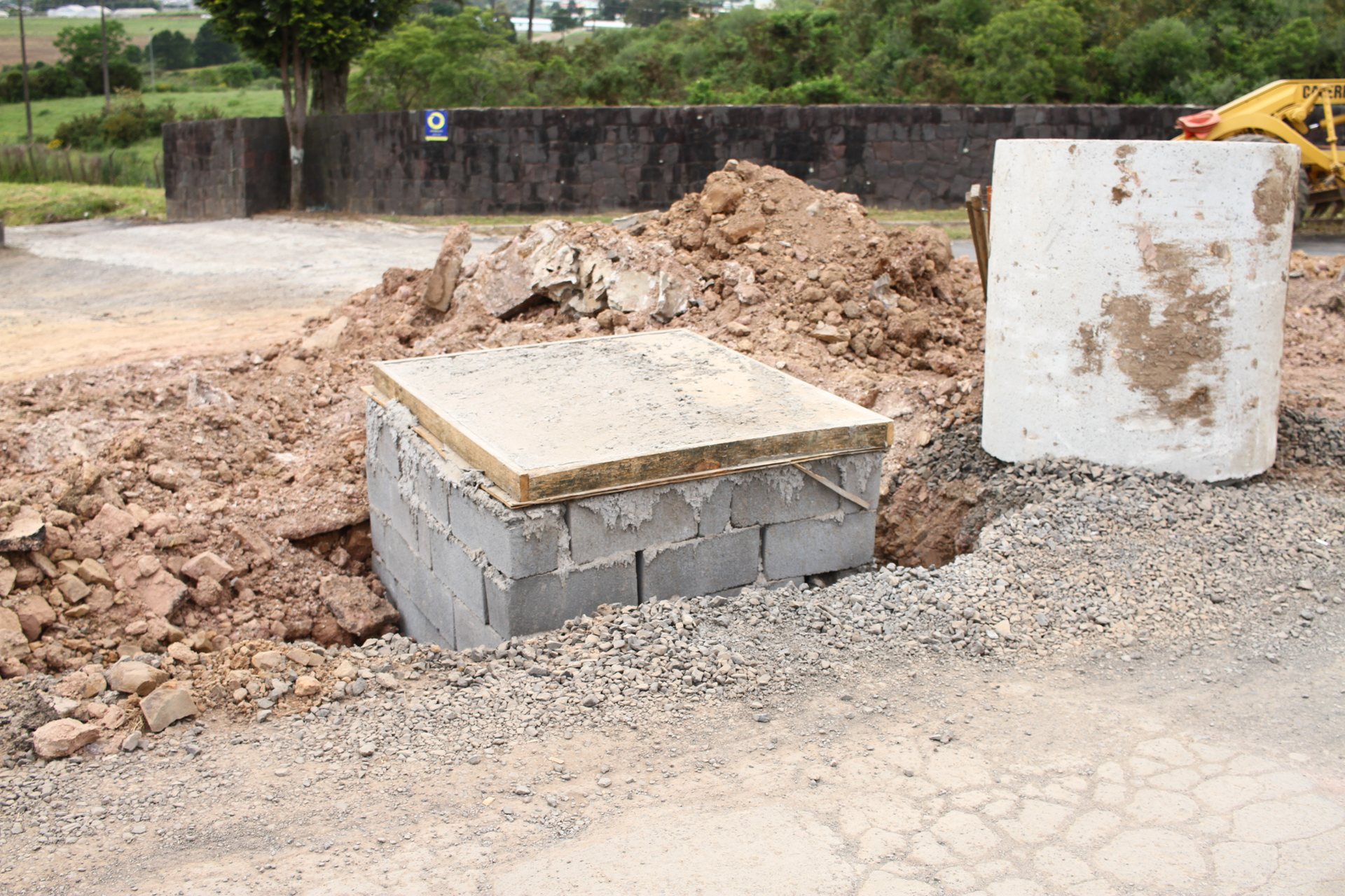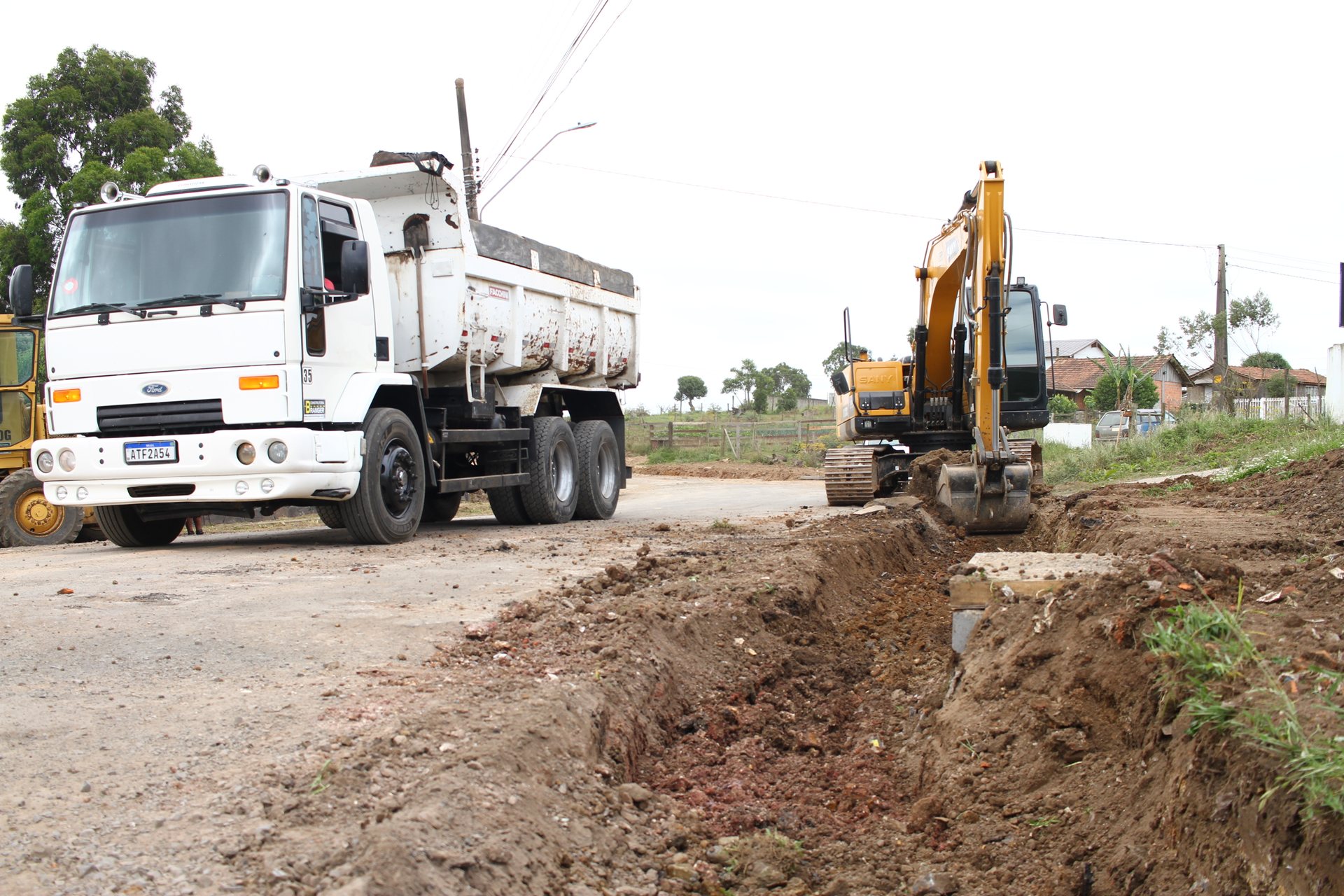 Neste trecho as obras estão adiantadas. Já foi feita a terraplenagem e agora prossegue a construção da rede pluvial ao longo das margens (espaço dos passeios públicos) da via.