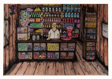 A Mercearia do Bairro é uma das muitas obras de Ribeiro em exposição (imagem: reprodução)