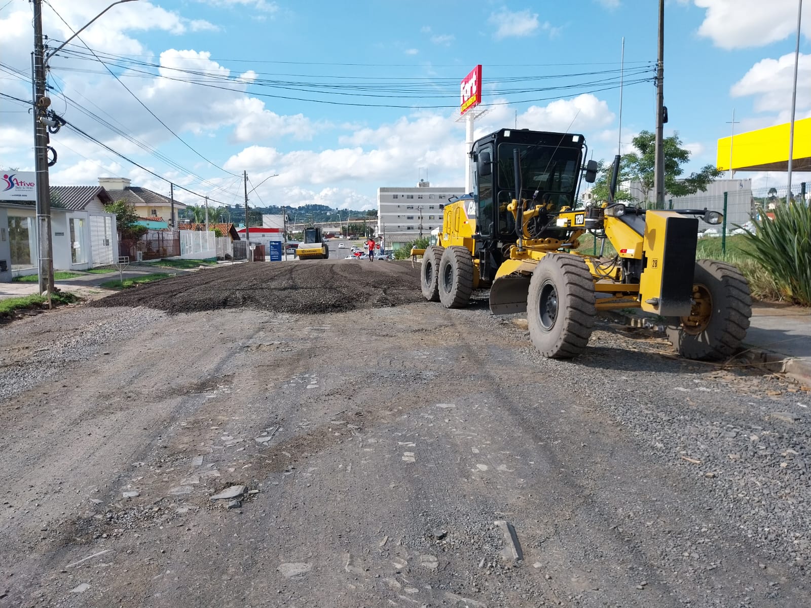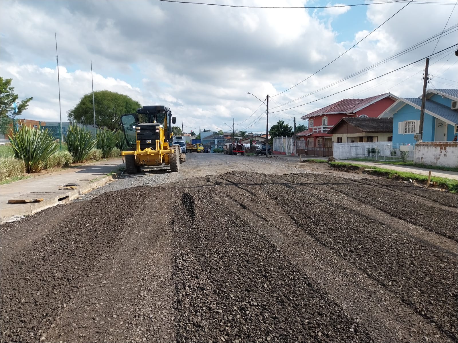 A primeira etapa da pavimentação asfáltica da rua Jairo Luiz Ramos, no bairro Sagrado Coração de Jesus, já está em andamento. O trecho em preparação se estende desde o cruzamento com a rua Getúlio Vargas até a interseção com a rua Hermes da Fonseca. Atualmente, estão sendo realizadas as etapas de implantação da base e sub-base, essenciais para a pavimentação.