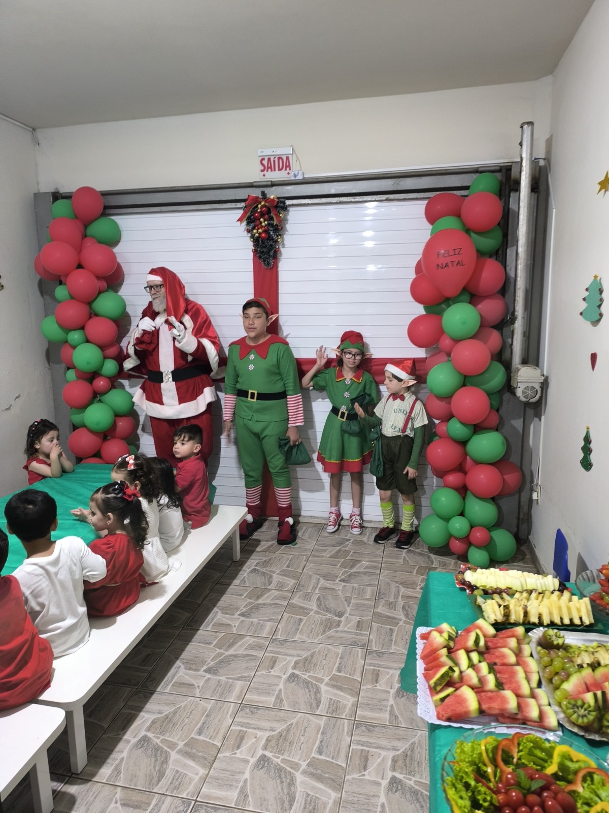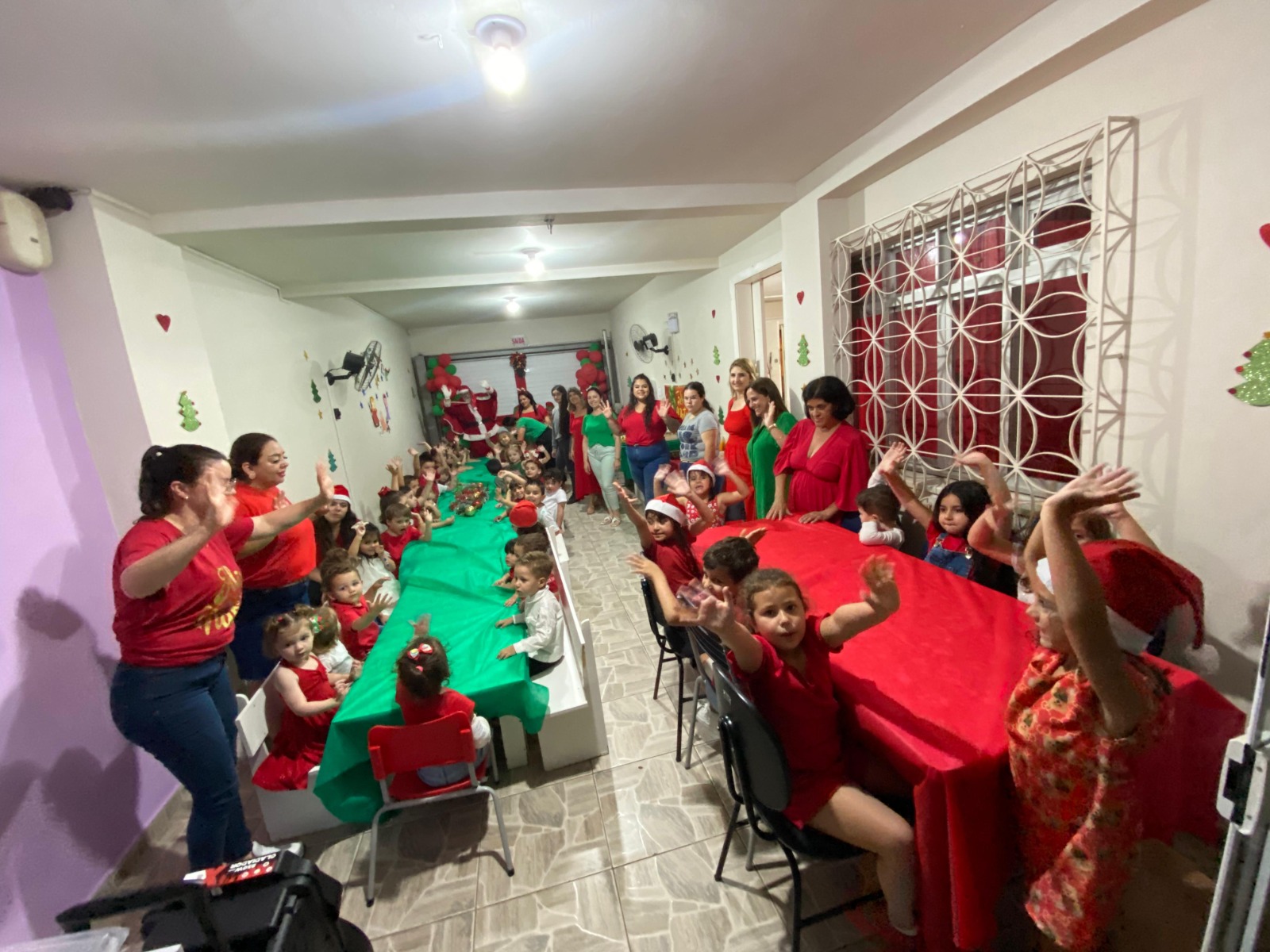 No Centro de Educação Infantil Municipal (CEIM), Primeiros Passos, no bairro Coral, no último dia 6, em parceria com pais e com o setor de alimentação da prefeitura, foi servido um jantar especial para todas as 72 crianças da unidade. Além de um cardápio saboroso e saudável, o evento contou com a presença do Papai Noel para alegrar a noite e trazer ao coração das crianças a magia do Natal.