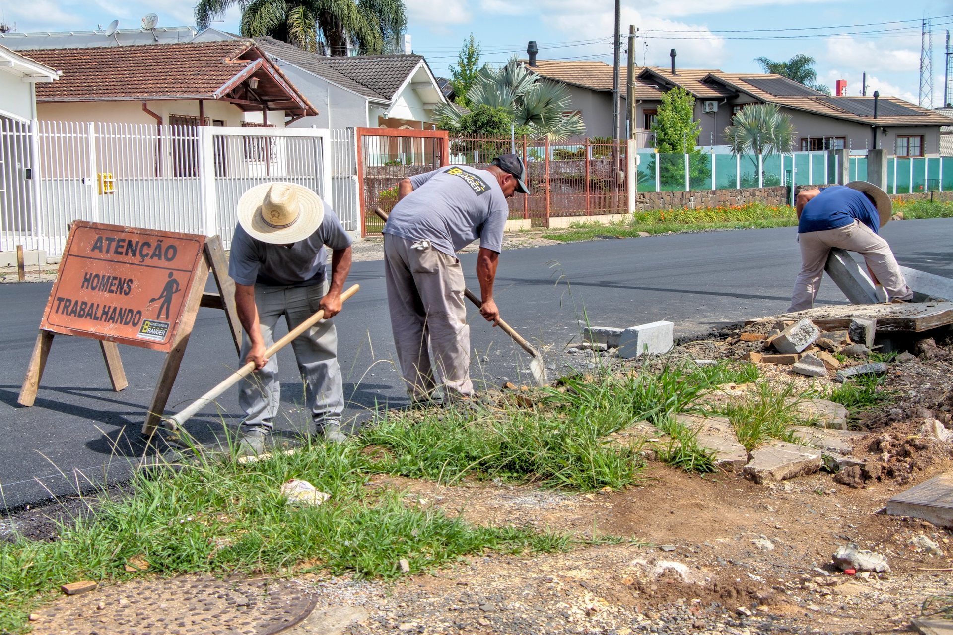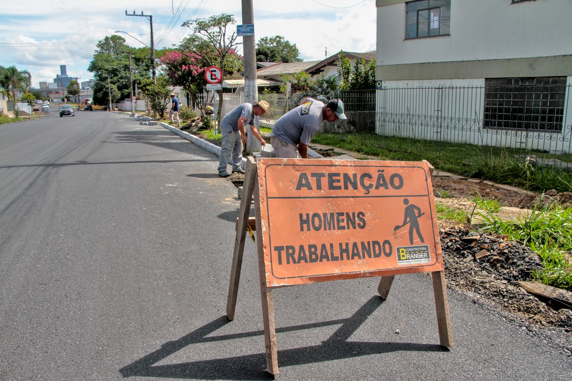 Na sequência do asfaltamento da rua Jairo Luiz Ramos, no Sagrado, está sendo feito implantação e alinhamento dos meios fios, ao longo de todo o trecho em obras: entre o cruzamento com a Getúlio Vargas e a interseção com a rua Benedito Marcondes do Amaral.