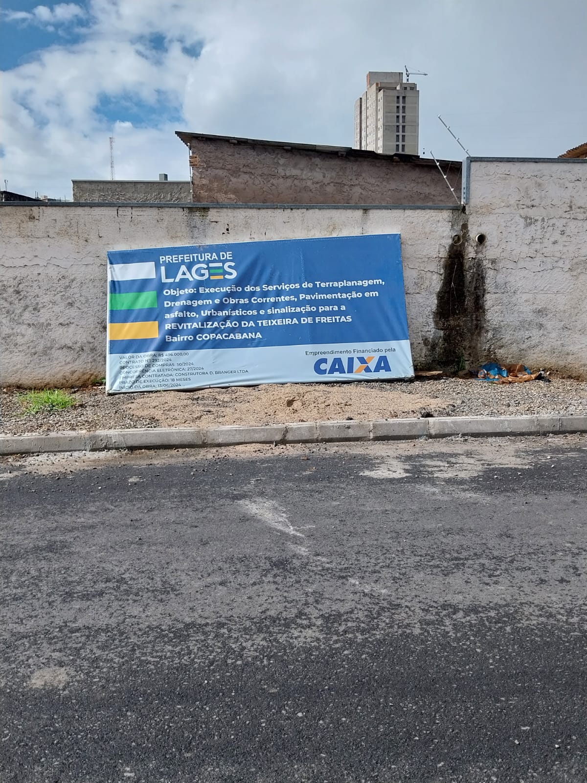 Extensão do trecho licitado, 167,45 metros. Obras de drenagem pluvial, terraplanagem, pavimentação em asfalto, obras correntes e sinalização de trânsito. Investimento de R$ 496 mil.