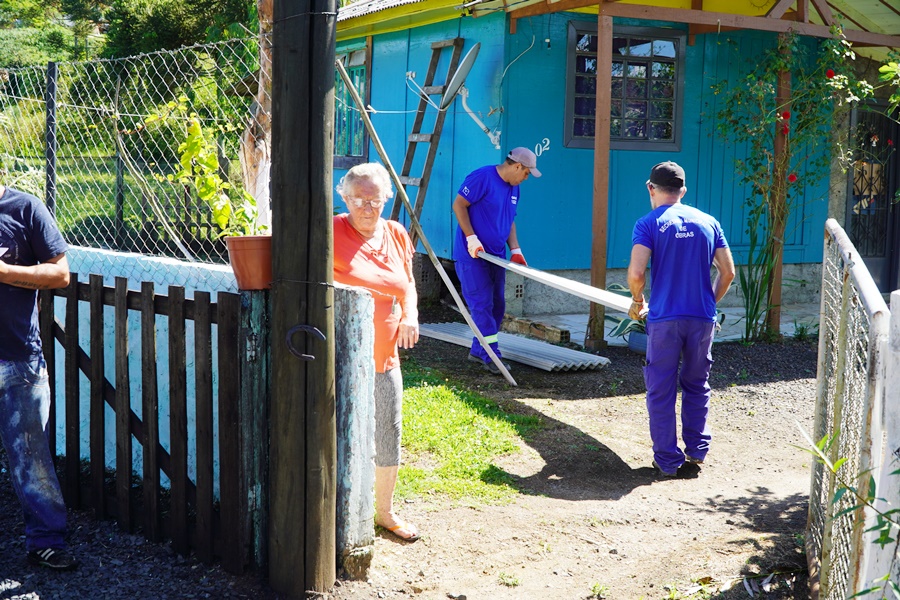 A aposentada Celita Grefi (75), mora há cerca de 30 anos no bairro e conta que ficou muito satisfeita pelo rápido atendimento das equipes. “Passamos por momentos de verdadeiro pavor no dia da chuva, fiquei trancada no banheiro e as pedras que caíam eram enormes. Agora estou mais tranquila ao ver as telhas chegando para arrumar a minha casa, já que o estrago foi grande e eu não teria condições de comprar telhas novas”, diz ela.