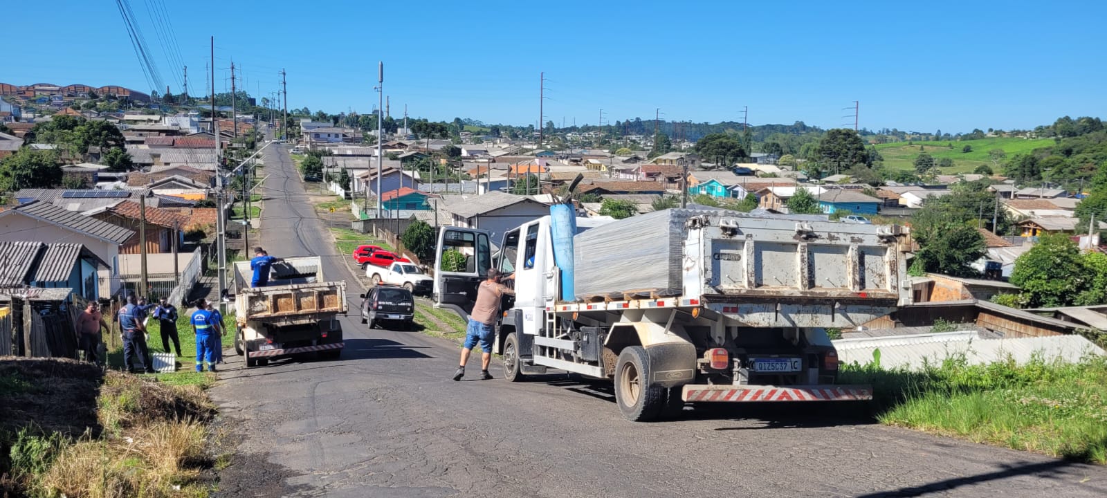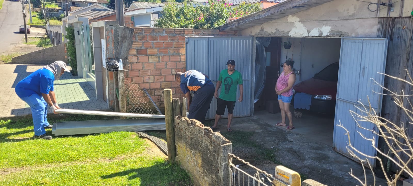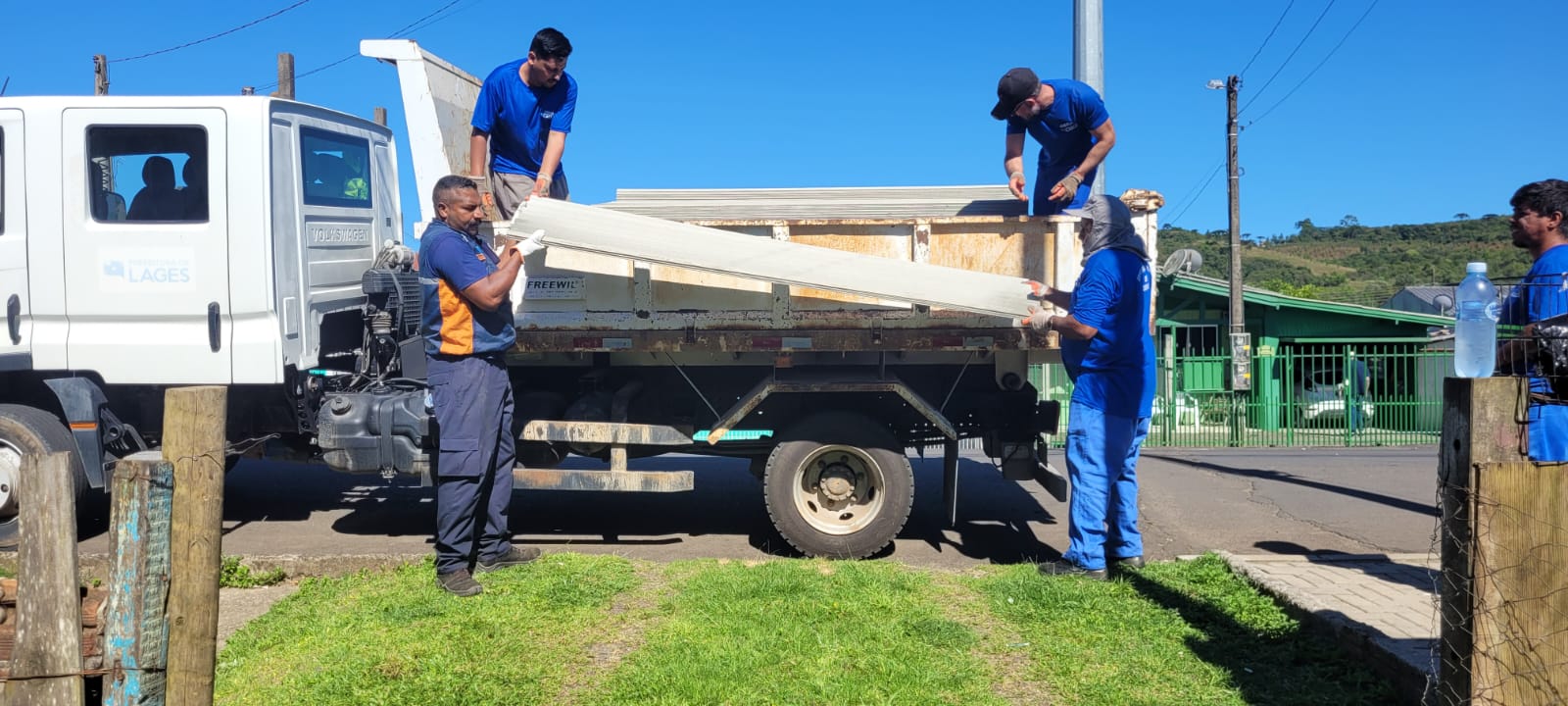 O final de semana em Lages segue com muito trabalho para prestar assistência aos moradores que foram atingidos pelo temporal de granizo, ocorrido na última terça-feira (31). Um verdadeiro mutirão organizado pela Prefeitura de Lages, envolvendo servidores da Coordenadoria Municipal de Proteção e Defesa Civil, da Secretaria de Serviços Públicos e Meio Ambiente, Secretaria de Obras e Diretran, dão continuidade ao cronograma de entregas de telhas nos bairros mais afetados.