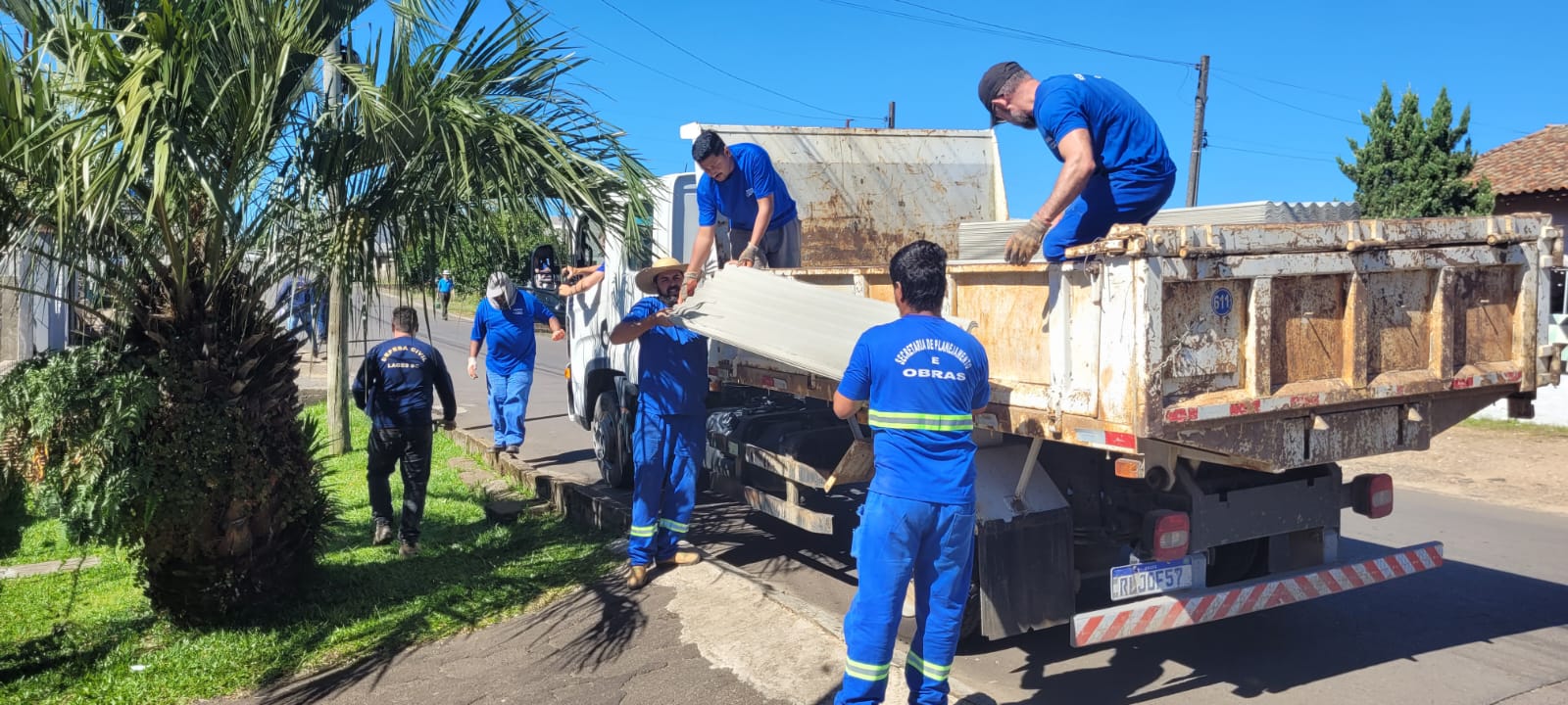 O Secretário Executivo da Defesa Civil de Lages, Sargento Ribeiro, orienta que todos os entulhos acumulados com as substituições das telhas sejam deixados em frente às residências e posteriormente serão recolhidos pela prefeitura.