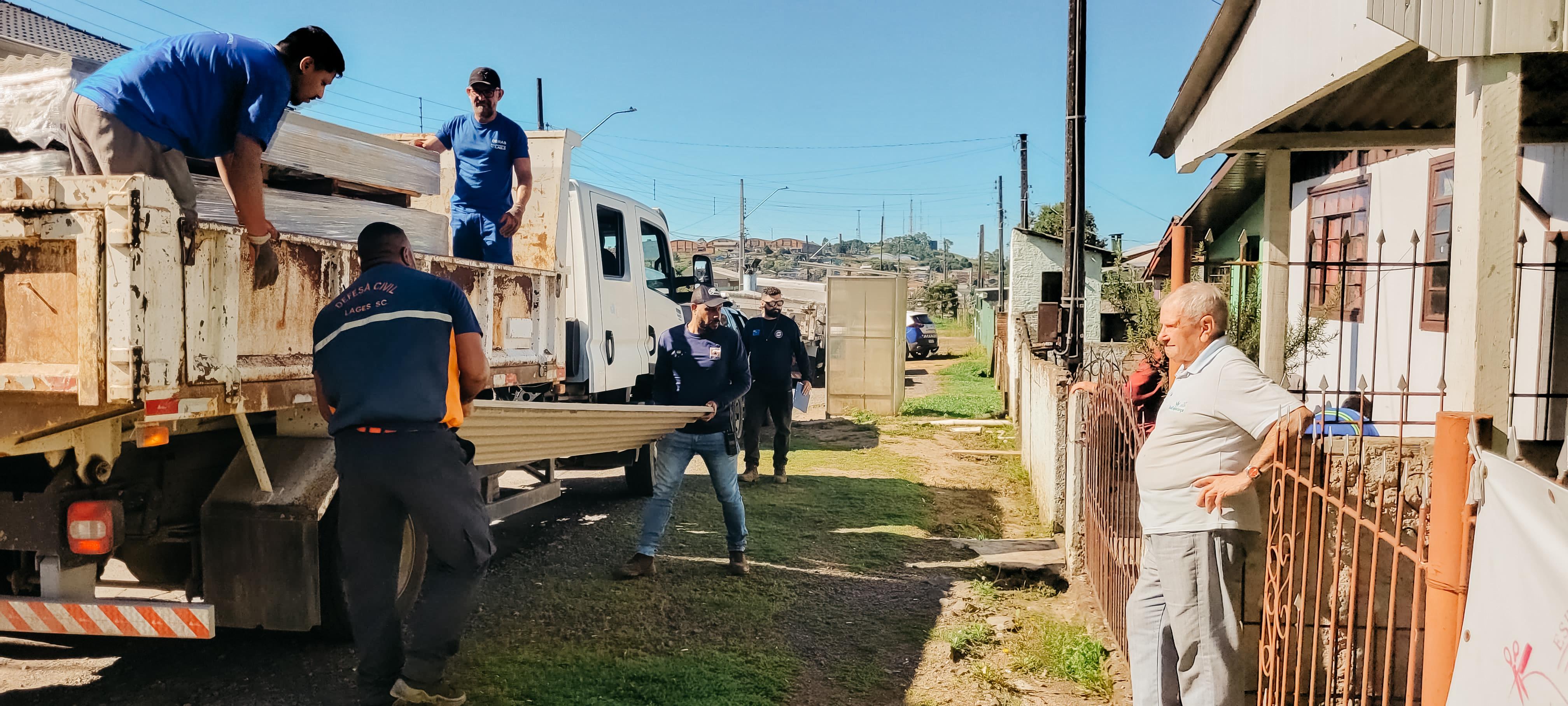 Desde o início da distribuição nesta semana, Lages recebeu um total de 14 mil unidades de telhas de fibrocimento de 4 e 6 milímetros. As telhas, fornecidas pelo governo do Estado, é um dos itens de assistência humanitária da Secretaria de Proteção e Defesa Civil do Estado de Santa Catarina. A agilidade no recebimento e entrega se dá pelo decreto de situação de emergência no município assinado pela prefeita Carmen Zanotto. “Nossa prioridade é atender as pessoas que estão passando por momentos difíceis logo no início do novo ano. Uma ação conjunta pelo bem estar da população”, diz a prefeita.
