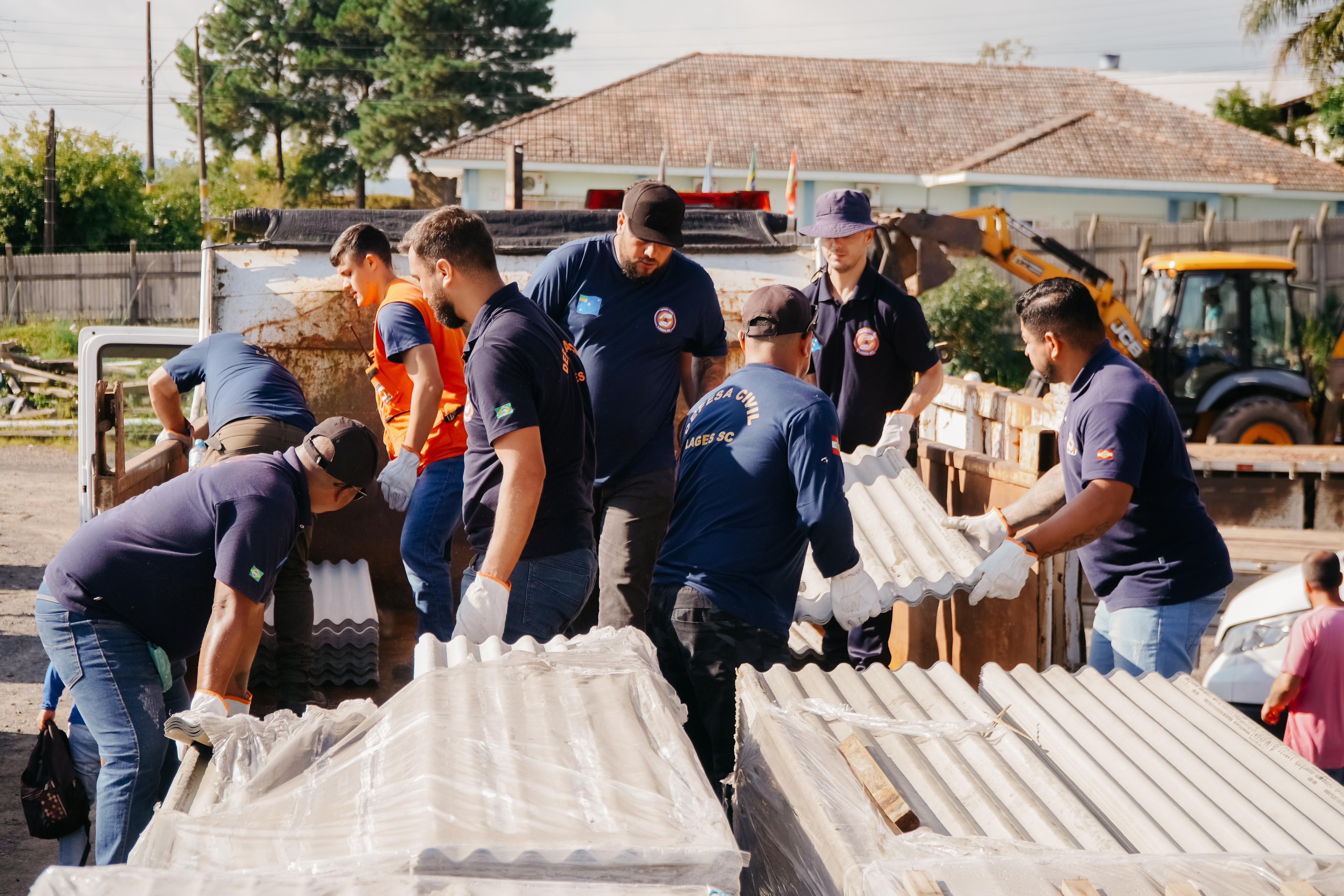 Nesta segunda, o trabalho se concentra na entrega das telhas de seis milímetros e deverá ser finalizado até o final do dia. Um novo caminhão com telhas já foi pedido e deverá chegar até amanhã. O propósito da Prefeitura de Lages é dar assistência a todas as três mil pessoas que tiveram suas residências atingidas, chegando a 758 casas com telhados danificados.