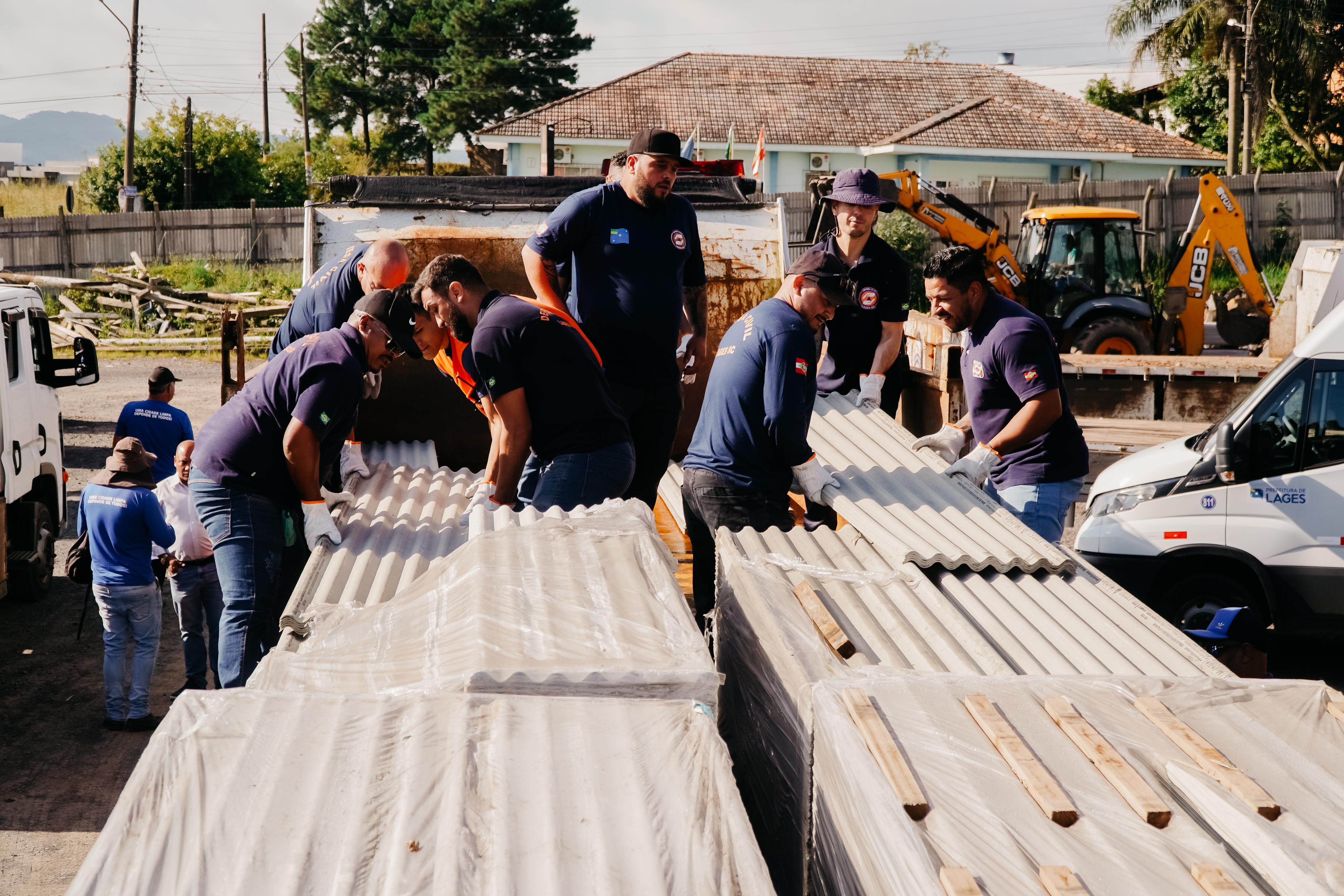 Entrega de telhas à população afetada pelo temporal tem continuidade nesta segunda-feira
