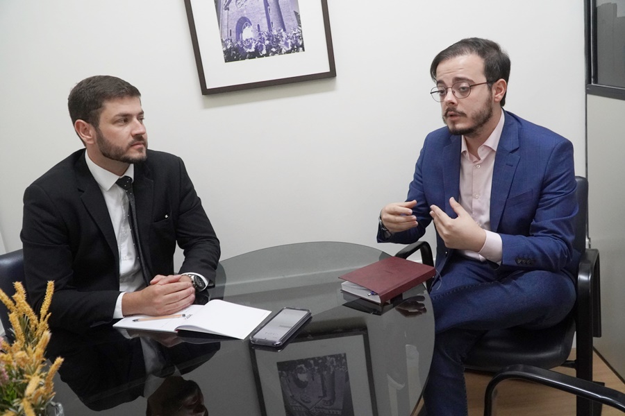 O executivo do Programa de Defesa do Consumidor do Município (Procon), Kevin Calbusch, apresentou ao presidente da Ordem dos Advogados do Brasil/SC (OAB) de Lages, Gabriel de Oliveira Antunes, o programa Balcão Virtual do Procon, na manhã desta segunda-feira (13), na sala da OAB do Fórum Nereu Ramos.