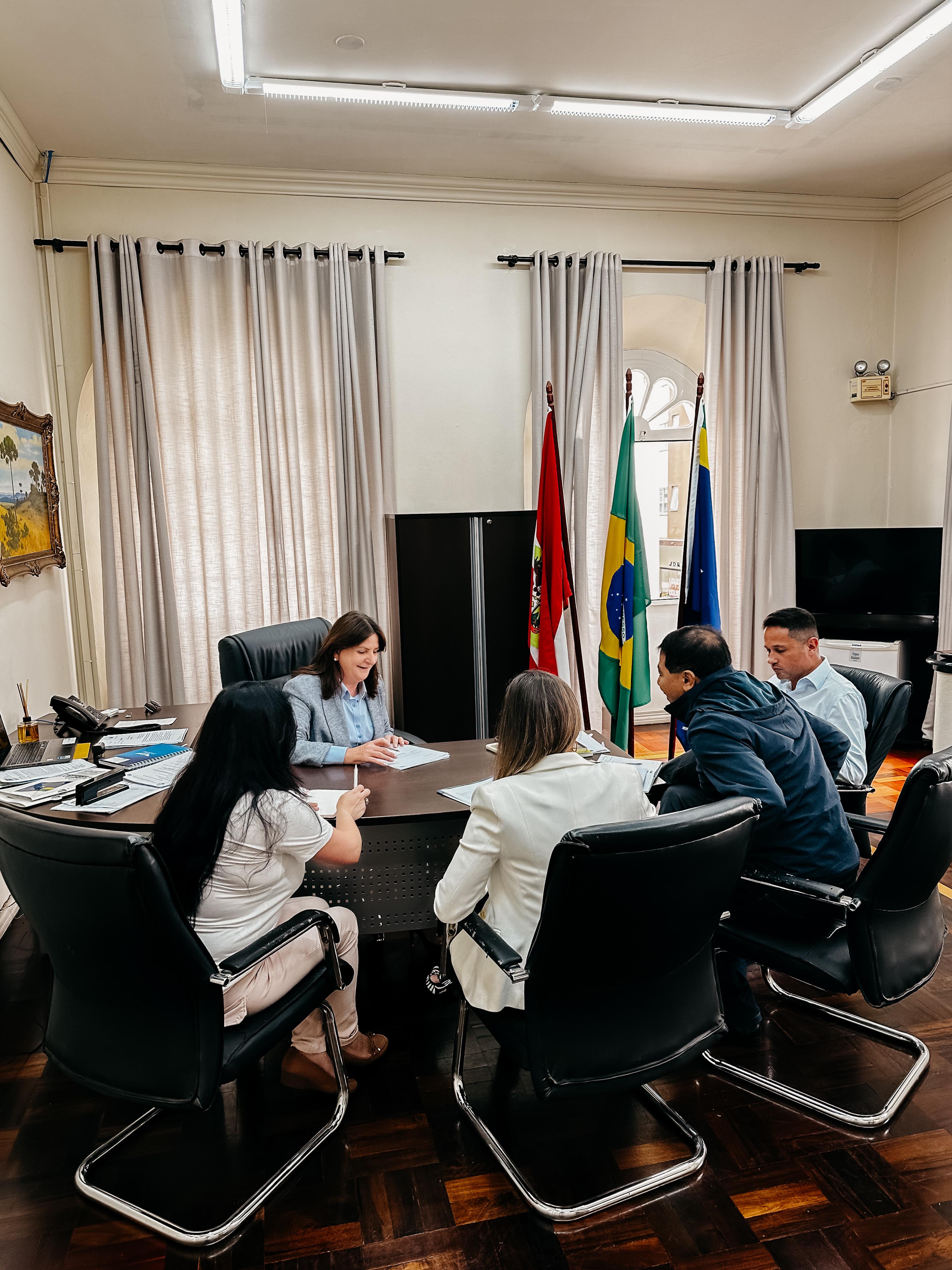 Acompanharam a reunião, ainda, o secretário do Planejamento e Mobilidade Urbana, Malek Ráu Dabbous, e a diretora de Iluminação Pública (setor vinculado à Secretaria de Serviços Públicos e Meio Ambiente), Marielle Madruga dos Santos.