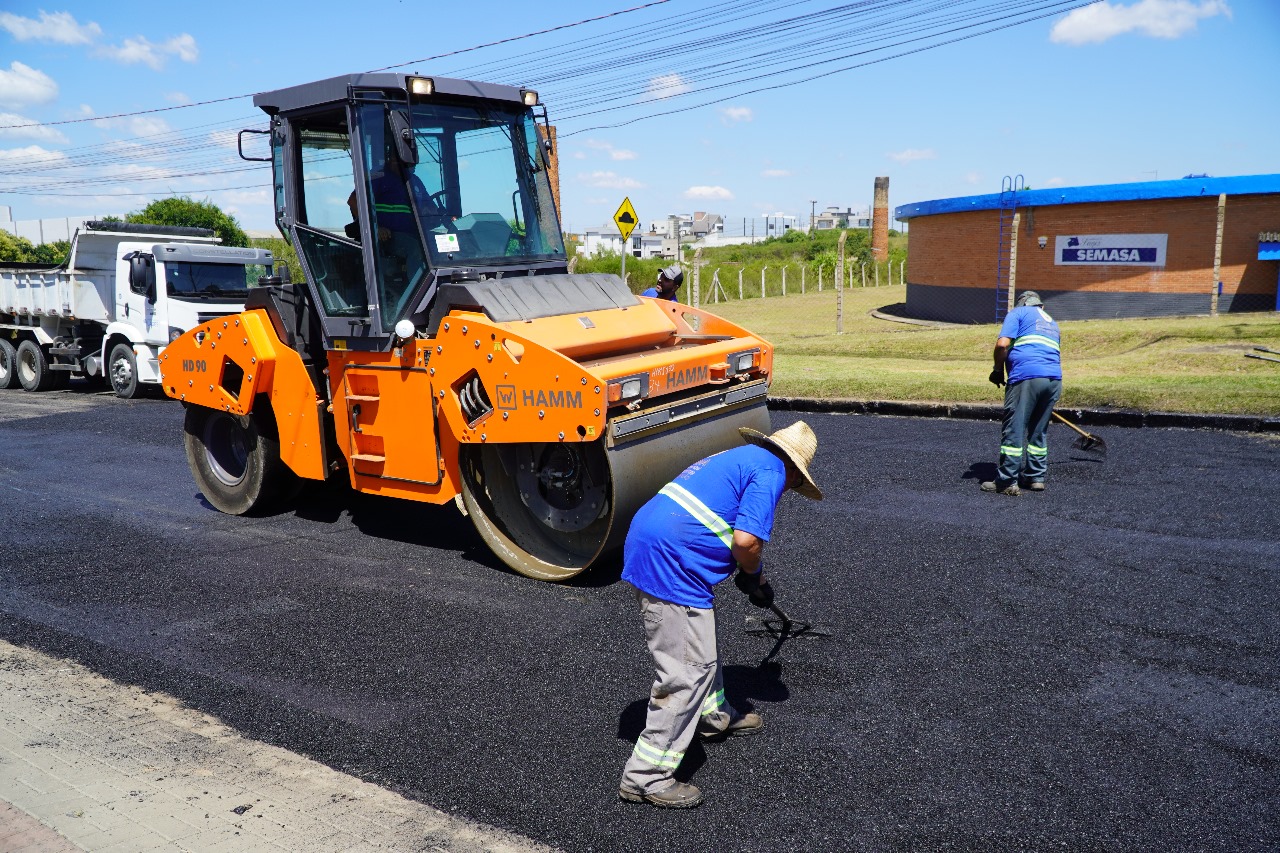 Os trabalhos de reperfilamento da pavimentação da rua Bruno Luersen foram os iniciais, com recuperação asfáltica da via entre as ruas Dom Antídio José Vargas e João Paulo I. Enquanto isto, em bairros e loteamentos, a Secretaria de Obras executou serviços de manutenção das condições de trafegabilidade a partir de cascalhamento e nivelamento do material.