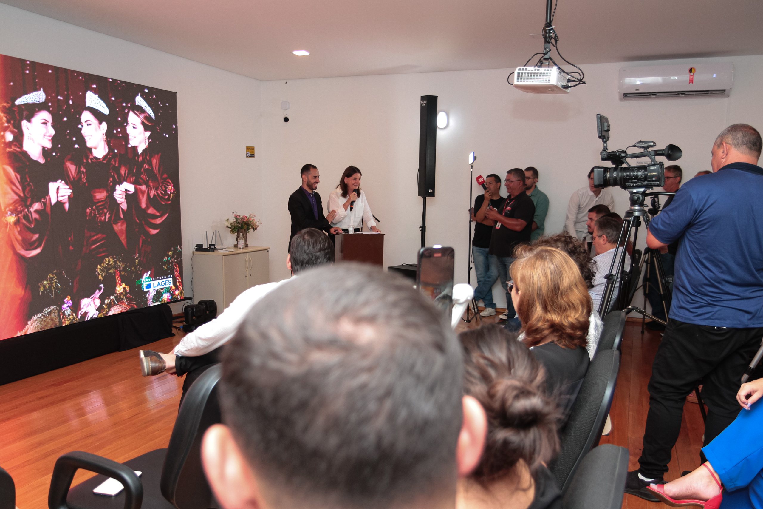 A prefeita Carmen Zanotto e o vice-prefeito, Jair Junior, anunciaram a publicação do edital da 35ª Festa Nacional do Pinhão, além do concurso e regulamento para a escolha das novas Rainha e Princesas do evento, durante coletiva com os profissionais de imprensa de Lages, na manhã desta segunda-feira (10), no auditório do Mercado Público Municipal. O evento acontecerá de 13 a 22 de junho, no parque de exposições Conta Dinheiro.