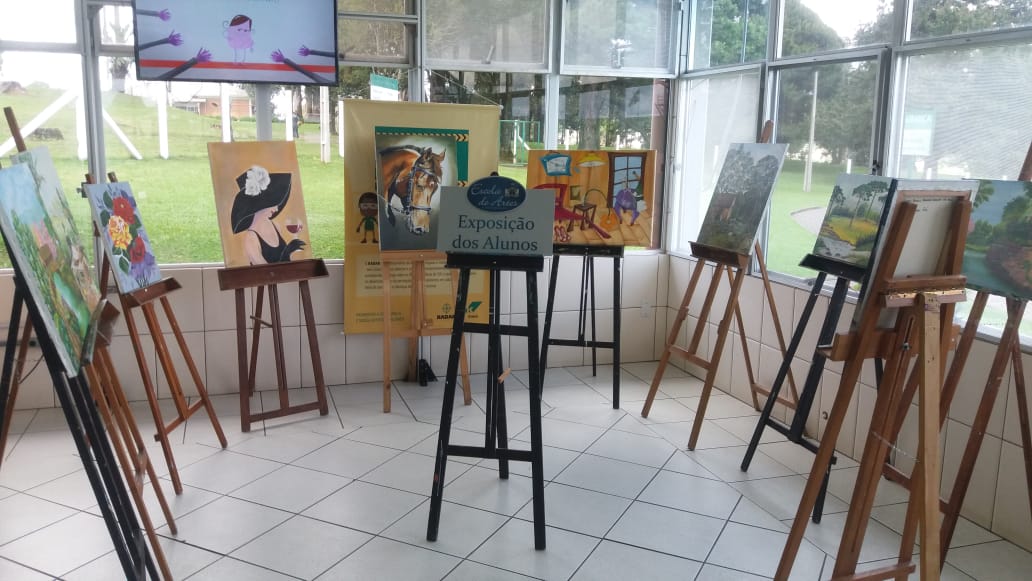 Obras artísticas dos alunos da Escola de Artes da Fundação de Cultural de Lages estão em exposição desde o início dessa semana na praça de alimentação da empresa Klabin. As instrutoras, Rosa Werner e Divina Pereira Wojcik são as responsáveis pela ação que tem o objetivo de levar todo o trabalho de pintura que é desenvolvido dentro da escola pelos estudantes, para que, outras vertentes da nossa comunidade possam apreciar as obras de arte.