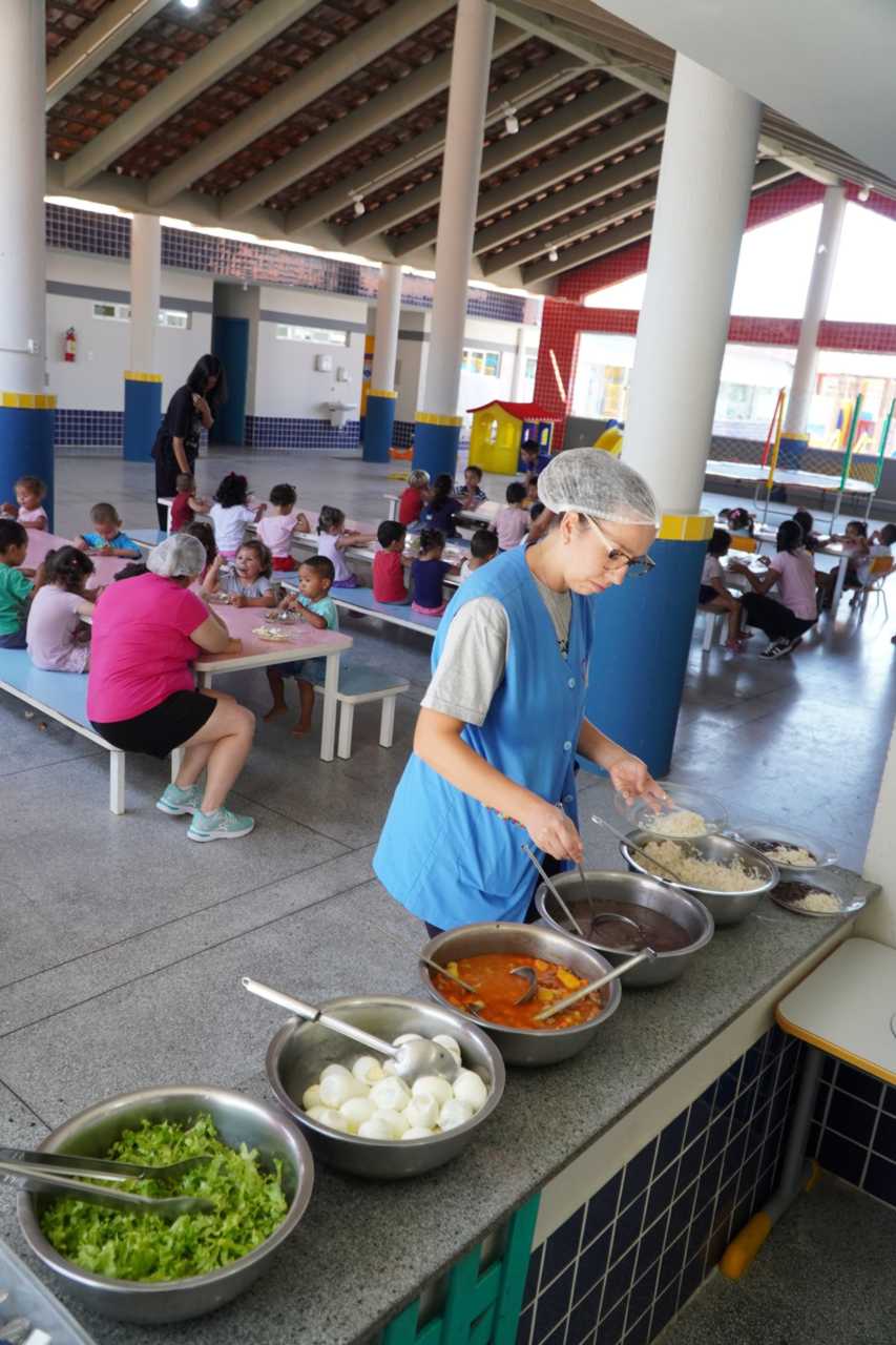 O cardápio balanceado e planejado por nutricionistas da prefeitura, atende as necessidades nutricionais de cada faixa etária das crianças da Educação Infantil e estudantes do Ensino Fundamental e Médio (Emeb Itinerante).