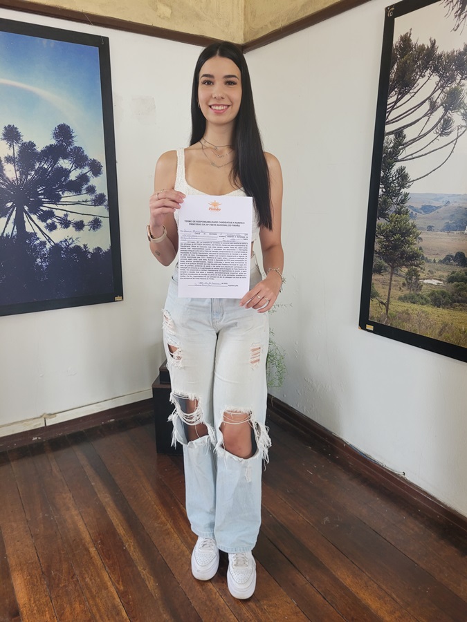 Um misto de ansiedade e expectativa para a realização de um sonho que a acompanha desde menina: fazer parte da realeza da Festa Nacional do Pinhão, um dos mais importantes eventos gastronômicos e culturais do Sul do país. Este é o sentimento evidenciado por Bruna Muniz Reis, 18 anos, a primeira garota a oficializar sua inscrição para o concurso que irá definir rainha e princesas da festa que está em sua 35ª edição.