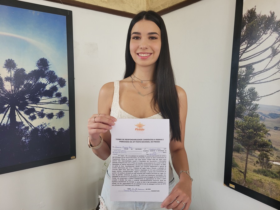 O regulamento completo, incluindo critérios, regras e a documentação necessária para participar do concurso, pode ser conferido por meio do link Edital Realeza Festa do Pinhão. As inscrições seguem até o dia 10 de março. A ficha poderá ser preenchida na Fundação Cultural de Lages, das 8h às 11h, e das 14h às 17h, lembrando que no ato da inscrição a candidata precisa estar munida de todos os documentos solicitados no regulamento.